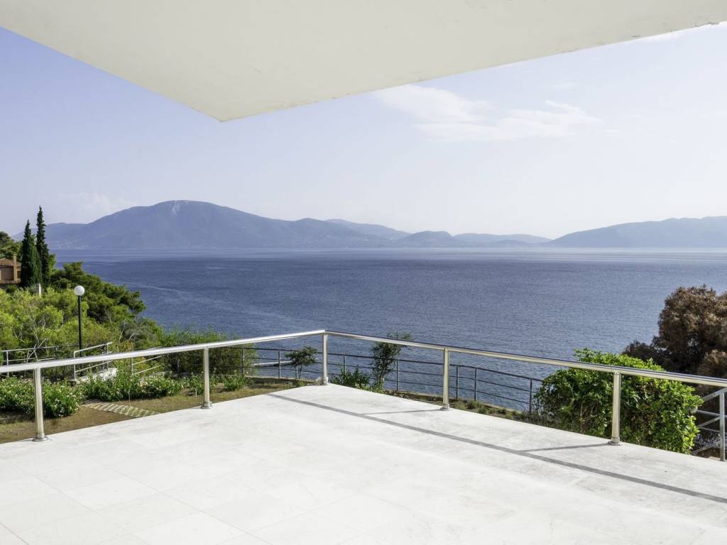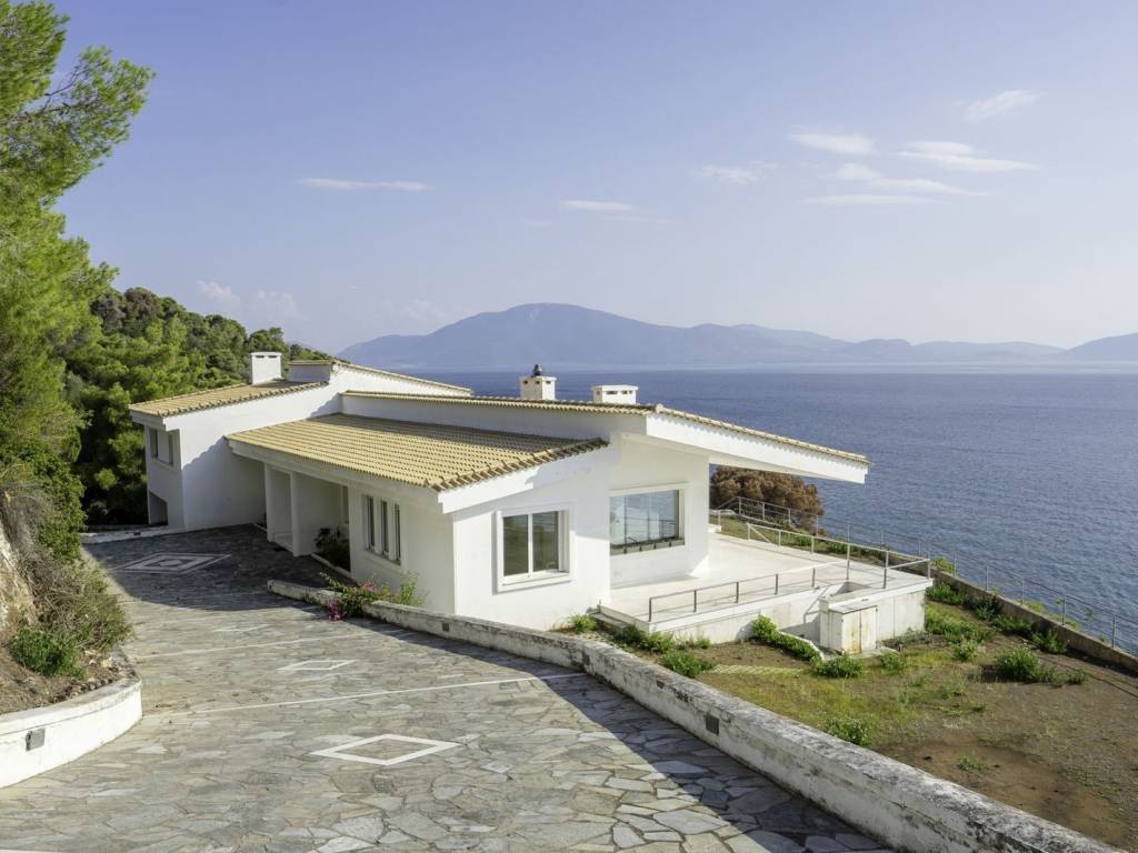 Private Seafront Villa with Direct Beach Access in Kakoperato, Messapia Set within the exclusive settlement of Kakoperato, this rare villa offers absolute privacy, panoramic sea views, and private access to the beach via its own stairway. Positioned on a 5,900 sq.m. hillside estate, the property overlooks the sea, delivering a unique sense of tranquility and natural beauty. Main Residence – 223 sq.m. -Spread across three levels, the main house features: -Oversized open‑plan living room with fireplace and floor‑to‑ceiling windows -Bright, spacious kitchen with wrap‑around views -High‑quality marble flooring throughout Upper Level: 2 bedrooms, each with a private balcony 1 master bathroom Breathtaking views Ground Level: 1 additional bedroom 1 bathroom Located conveniently beside the kitchen area Guest House – 38 sq.m. A self‑contained guest apartment with: -Separate private entrance -Kitchenette -Bathroom -Independent A/C unit Additional Features: Central A/C system in the main house Separate A/C units in the ground‑floor bedroom and guest house 2 storage rooms Beachfront garage with bathroom and shower, just 10 meters from the water—ideal for days spent by the sea A rare opportunity to own a private retreat with unmatched views, serenity, and direct access to crystal‑clear waters. Book a viewing today at +306987225502, Dimitris@sellingevia.com
