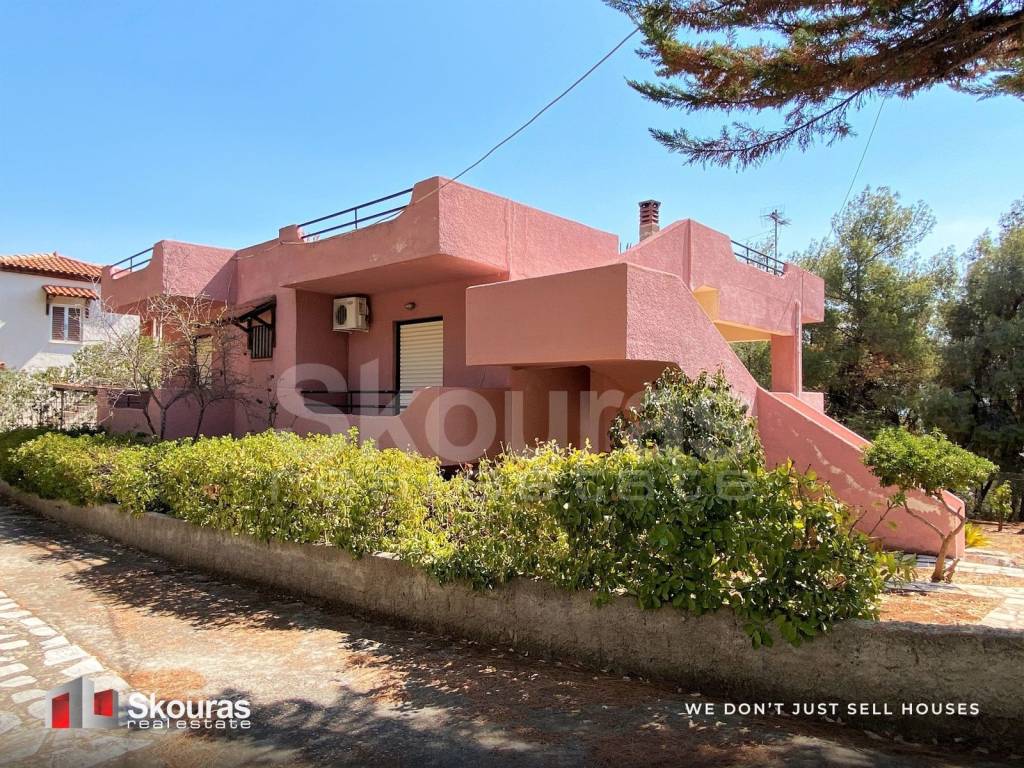 In one of the most beautiful and lush green residential areas of the region, in Amoni, Corinthia, a detached house is offered for sale, with a total surface of 160 sq.m., set on a private plot of 500 sq.m. The property enjoys views of the surrounding mountains, while from the rooftop it offers a sea view, all within a शांत and natural environment. The residence is developed across two levels and is positioned at the front of the plot, ensuring both privacy and comfort. On the ground level (80 sq.m.), there is a spacious open-plan area currently used as a playroom and storage space, with the flexibility to be configured according to the needs of the new owner. The main level (80 sq.m.), where the primary entrance is located, features two comfortable bedrooms, one bathroom, one WC, and an open-plan kitchen and living area with a fireplace. This level provides access to a generous veranda with pleasant views of the pine-covered landscape and the sea, offering an ideal setting for relaxation. The property benefits from direct access to the landscaped garden, as well as a comfortable on-site parking area. It is equipped with air conditioning units in all rooms and aluminum window frames. An additional advantage is the remaining building capacity of approximately 80 sq.m., allowing for future expansion or the creation of additional living spaces. The house is located just 3 km from the area’s beautiful beaches and approximately 105 km from Athens, making it an excellent choice for a holiday home or an investment opportunity in an emerging seaside destination. Skouras Real Estate #1 Greek Real Estate Agency in the Peloponnese 4 Offices: Nafplio | Kalamata | Corinth | Porto Heli 3000+ Properties | 18+ Years of Experience | Support in 5 Languages Marketing & Website – European Property Awards 2020 Marketing Techniques & Development – EPPA 2022 & 2024 Call Center: +30 27520-29529 Mobile: +30 6998684457 Email: vbo@skourasrealestate.gr Property Manager: Vassilios Mpokos Over 3,000 properties available at: www.skourasrealestate.gr Note: The property information is based on data provided by the owners. Skouras Real Estate bears no responsibility for any inaccuracies. ID card or passport required for property visits. Map locations are approximate.