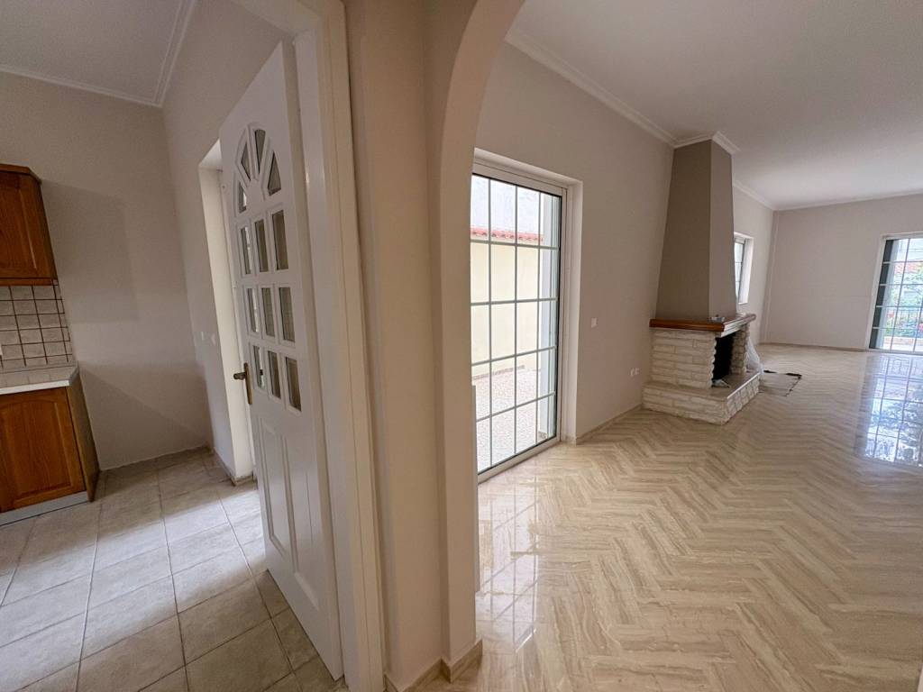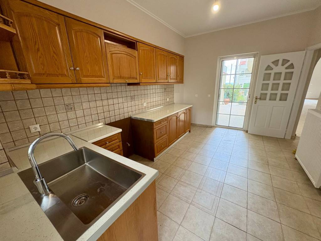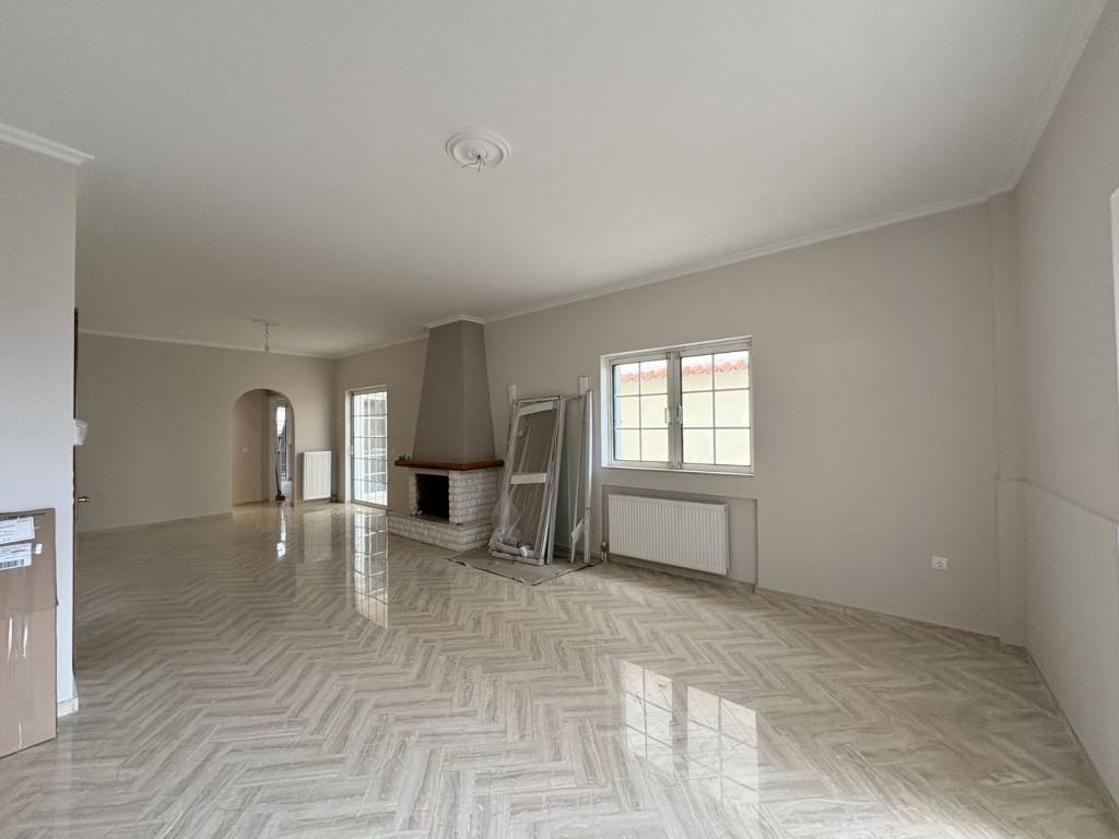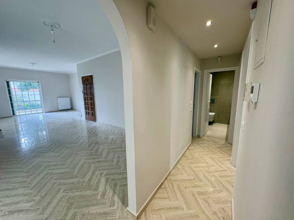 A newly renovated, elevated ground-floor apartment is available for rent, with a total area of 105 sq.m., featuring a functional layout: a spacious open-plan living and dining area, a separate kitchen, two bedrooms, and two bathrooms. The property includes a reinforced security entrance door, alarm system, fire safety features, a fireplace, aluminum window frames (with double glazing and insect screens), a solar water heater, autonomous oil heating (with new radiators), marble and tiled flooring, three-phase electricity, large verandas, a storage room, and both front and back garden areas. It is a bright and well-ventilated apartment, offering a pleasant sense of comfort. It is located in a quiet, green neighborhood. The location provides easy access to: Attiki Odos and other main roads Metro Line 3 and the suburban railway (20 minutes to “Syntagma” station, 13 minutes to the Airport), as well as major bus routes The airport (approximately 20 minutes by car)