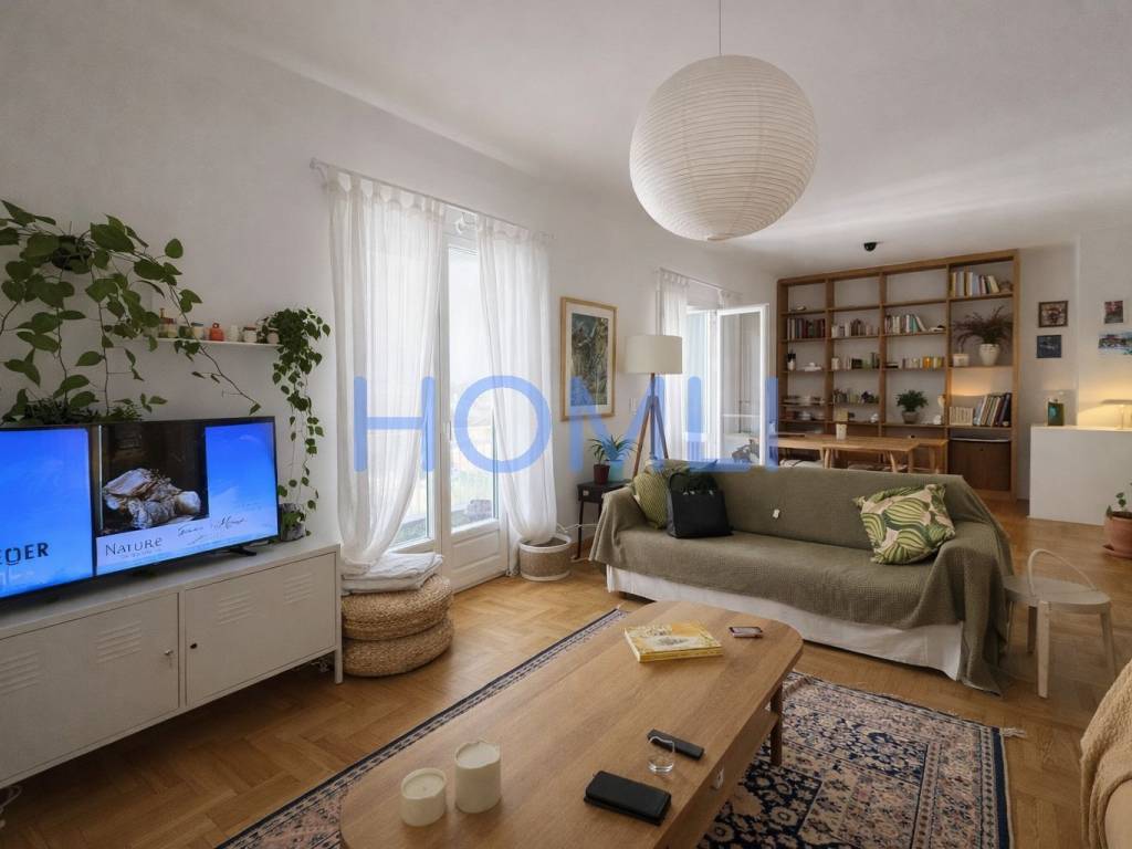Modern 107 sq.m. third-floor apartment. It features two bedrooms, one bathroom, and a spacious living room, offering excellent organization and ample natural light. The apartment was completely renovated in 2023 and includes built-in electrical appliances. It also features a storage room, a balcony with electric blinds and awnings, and an alarm system for increased security. The heating is autonomous with natural gas, while the aluminum frames with double glazing ensure excellent sound insulation and energy efficiency. The apartment building has an elevator, facilitating access. For more information or to schedule a visit, please contact us. HOMLI, property code 27585. Contact us at 210 444 6498.