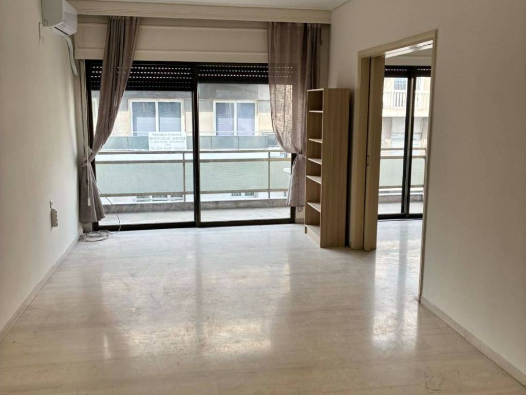 101 sq.m. Apartment for Rent – Volos City Center Location: Volos Center (Just 100 meters from the seafront) Ideal for: Private Residence or Professional Use (Office, medical Clinic, etc.) Key Features: Size: 101 sq.m. Floor: 2nd Floor Layout: Bright and airy (cross-ventilated) Rooms: * 2 Spacious Living Rooms 2 Comfortable Bedrooms Kitchen & Bathroom Amenities & Upgrades: Heating: Autonomous natural gas heating system. Cooling: Brand new ceiling fans in both bedrooms and Air Conditioning (A/C) in the living room. Windows: Brand new aluminum frames in both bedrooms for excellent thermal and sound insulation. Security: New heavy-duty security door. Outdoor Space:Balconies on both the front and back sides of the apartment. Property Description: An exceptional property located in a strategic spot in the heart of Volos. Its unique layout featuring two living rooms offers great flexibility: it can serve as a spacious home with distinct dining and lounge areas, or as a professional space with a large reception area and private offices. The apartment’s proximity to the seafront (only a 1-minute walk) and its abundant natural light make it a great choice for any use.