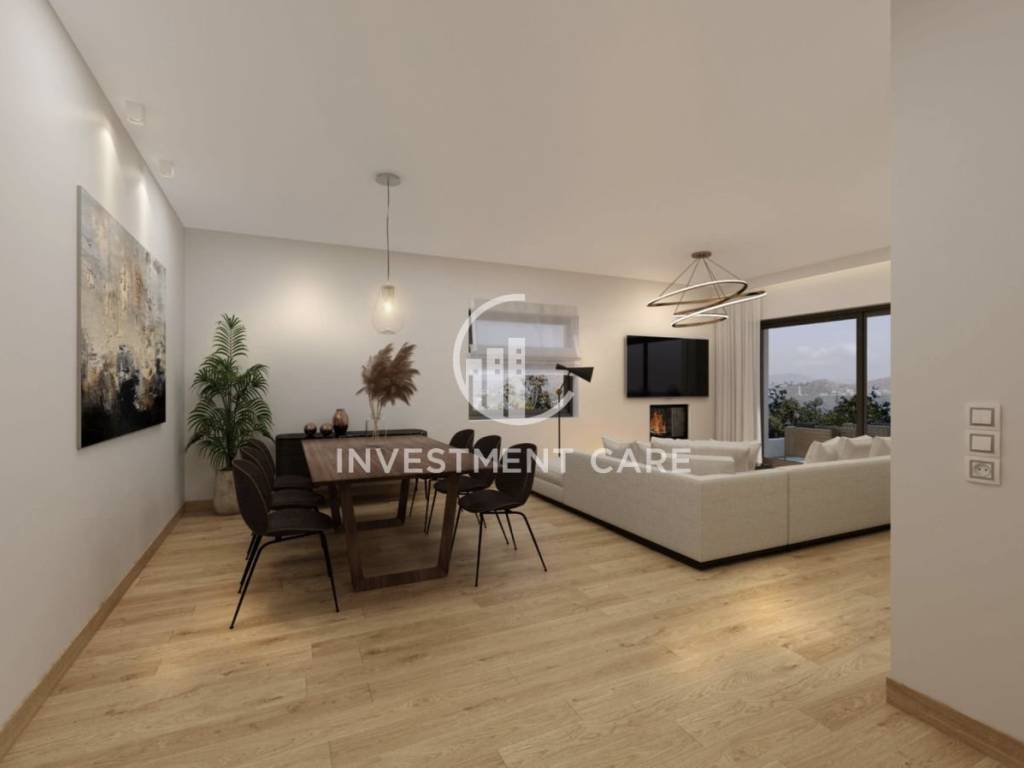 In a very beautiful and quiet location in Melissia, with close access to local transport, 115sqm 1st floor apartment, modern in design, bright and with a nice view, which consists of a living room with fireplace, dining room, open plan kitchen, 3 bedrooms, 2 bathrooms, comfortable verandas, has underfloor heating with heat pump, solar, air conditioning, alarm, wooden floors, storage room, parking. Delivery in October 2026. Price €540,000
