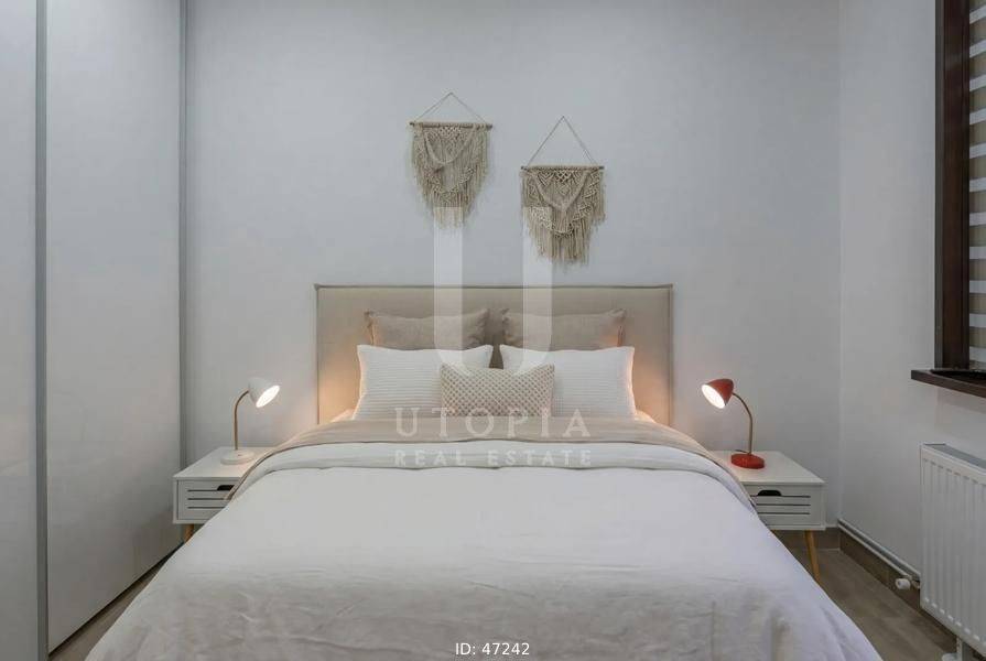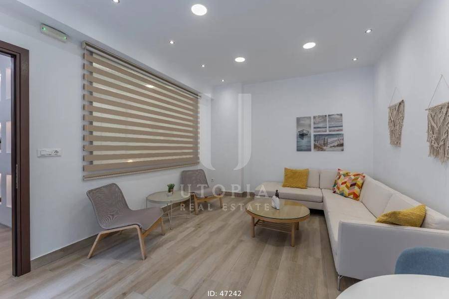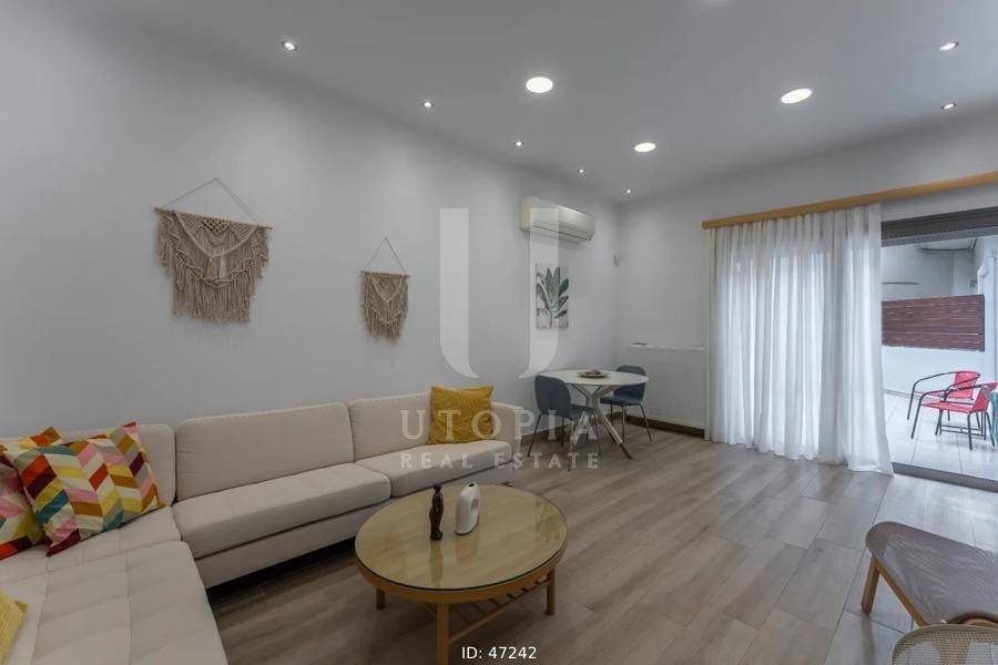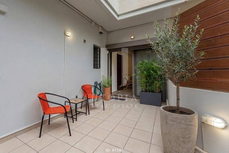 Glyfada, Ano Glyfada - Apartment 57sqm fully furnished, bedroom, levels 1, basement, excellent condition, year built 2012, energy class E, living room, kitchen, bathroom, heating type: autonomous, air condition, quiet, luminous, electric roller shutters, garden, garden 18sqm, built in appliances, aluminum frames, double glazed windows, door screen, ceramic tiles floors, secure door, alarm, residential zone, access from asphalt.