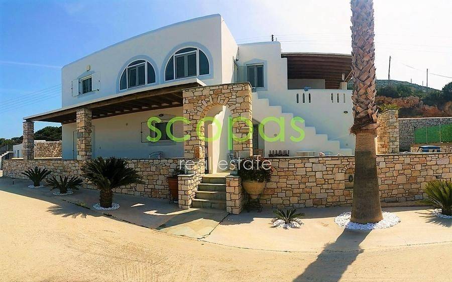 House for sale by SCOPAS REAL ESTATE & CONSTRUCTION. 2-level house of 336m2, fully furnished, in western Paros, in the area of Sarakiniko. The property consists of 4 bedrooms, 3 bathrooms, 2 kitchens, a living room area, a garden and a parking space. Suitable for permanent or holiday home in the idyllic Cycladic landscape. It is also an ideal choice for investment as 2 separate residences. Western orientation with a unique view of the Paros-Antiparos channel and the sunset. All networks are available. Accessible by paved road. 1.5km from the beach, 5.3km from the port, 5.2km from the airport. The information and characteristics of the properties have been entered based on the information and data provided by the principal. -The point on the map does not correspond to the real address of the property. -When indicating the property, a identity card or VAT number is necessary, according to Law N.4072/2012 - Official Gazette 86/A/11-4-2012.