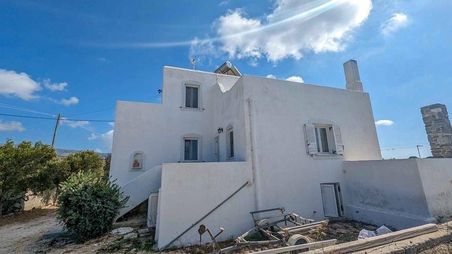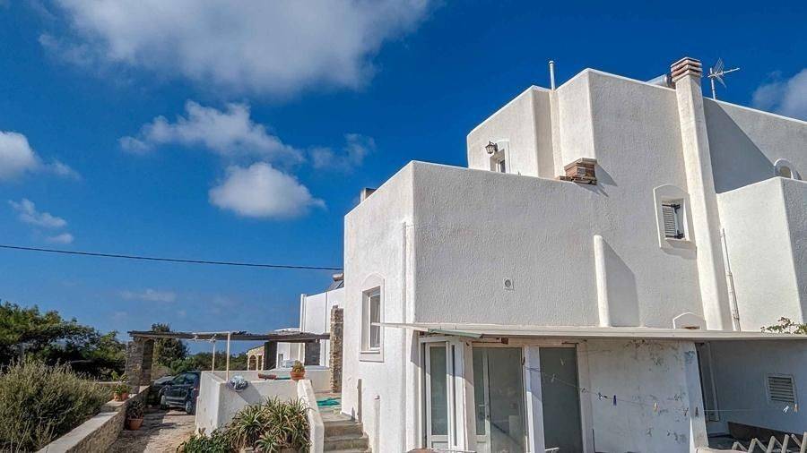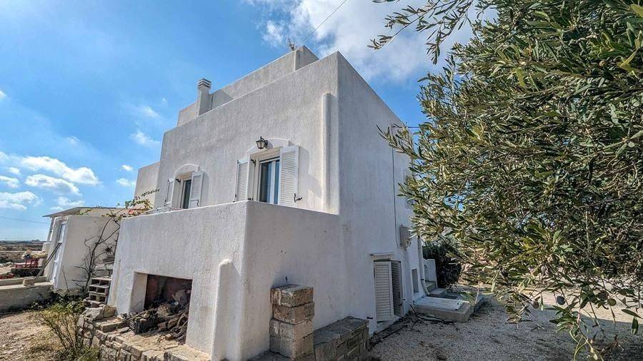 House of 180m2 for sale in Punda by SCOPAS REAL ESTATE & CONSTRUCTION. 3- level house of 180m2, in a plot of 1500m2, in southwest Paros, in Punda. On the first floor, there is 1 bedroom and 1 bathroom. The ground floor consists of 2 bedrooms, 1 bahtroom, a kitchen and a living room area. In the basement there is an independent apartment of 80m2 that consists of 1 bedroom, 2 bathrooms, 1 kitchen, a living room area and a storage room. It has also big verandas, a garden and 3 parking spaces. Western orientation with sea view overlooking Antiparos Island. Suitable for permanent or holiday home in the idyllic Cycladic landscape. It is also an ideal choice for investment either as one residence or as two separate ones. All networks are connected. Accessible by a dirt road. 800m from the beach, 8.3km from the port, 5.5km from the airport.