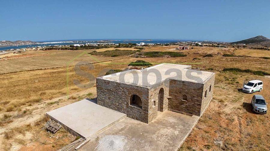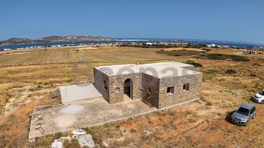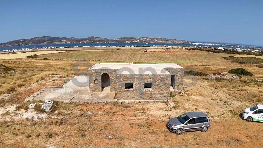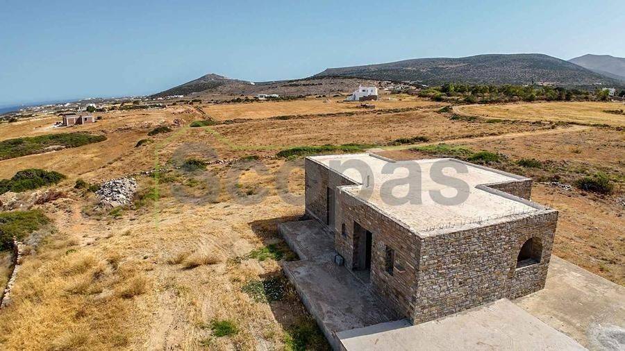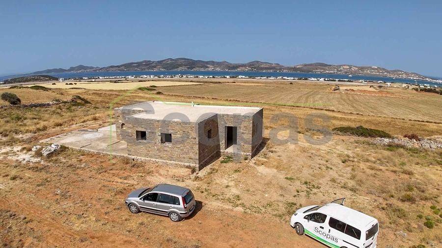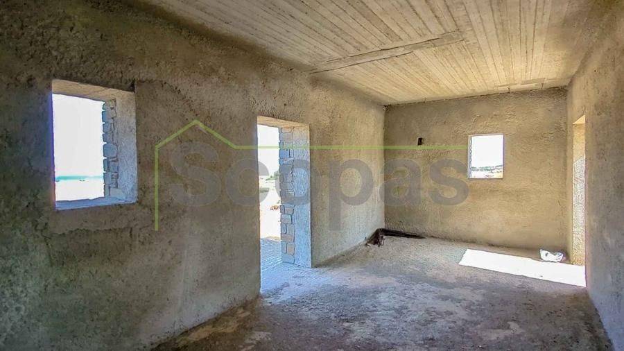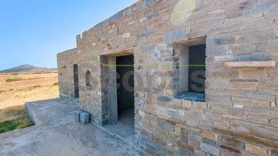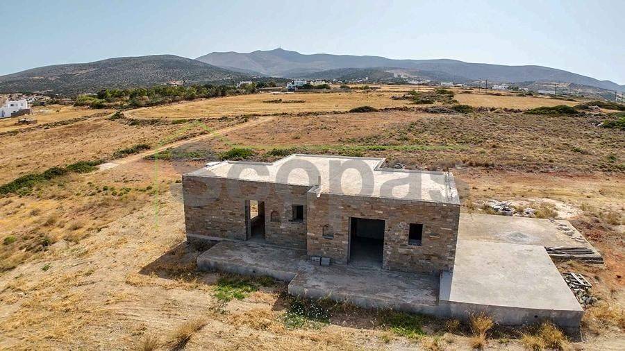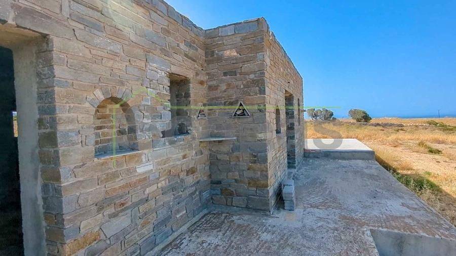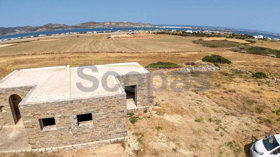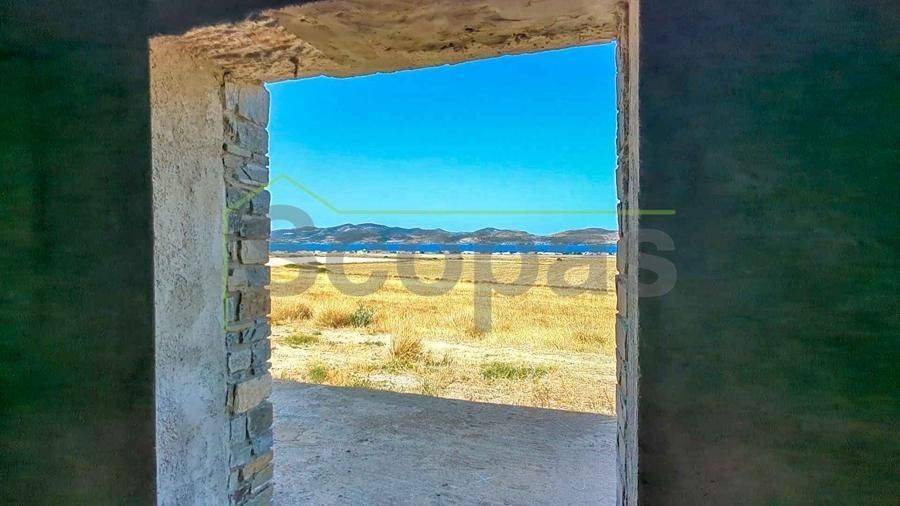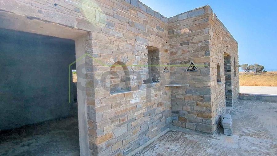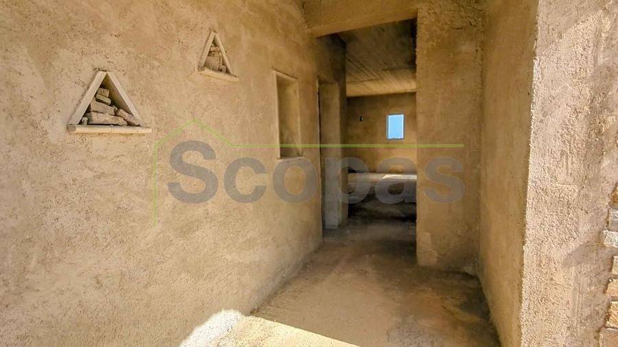 Unfinished construction for sale by SCOPAS REAL ESTATE & CONSTRUCTION. House with a total area of 76m2, on a plot of 4332m2, in southern Paros, in Voutakos. It has a remaining building ability of ​​130m2 more. The property includes 2 bedrooms, 1 bathroom, a kitchen, and a living room area. There is also a semi-basement area that can be configured to become a guest house. Plenty of space for parking, a garden, and an olive yard. Southeast orientation with a unique view of the Aegean Sea and the channel of Antiparos-Paros. Accessible by dirt road, 3κm from the nearest beach, 1.3km from the airport, 9.6km from the port.