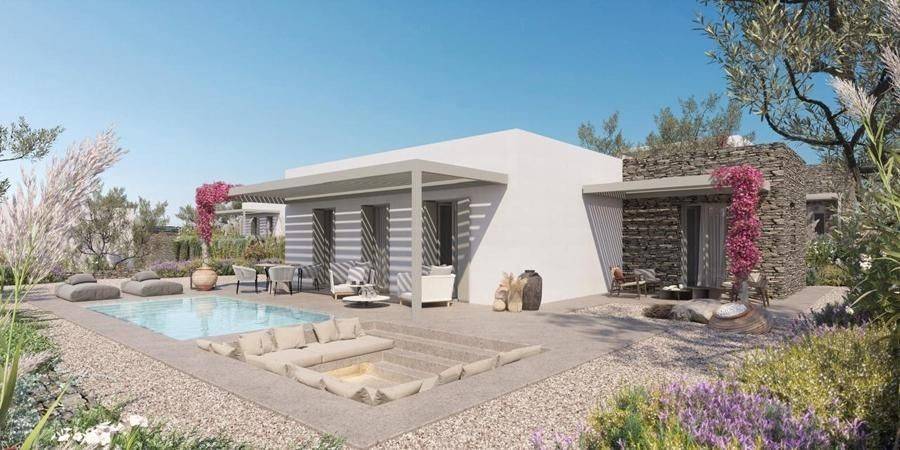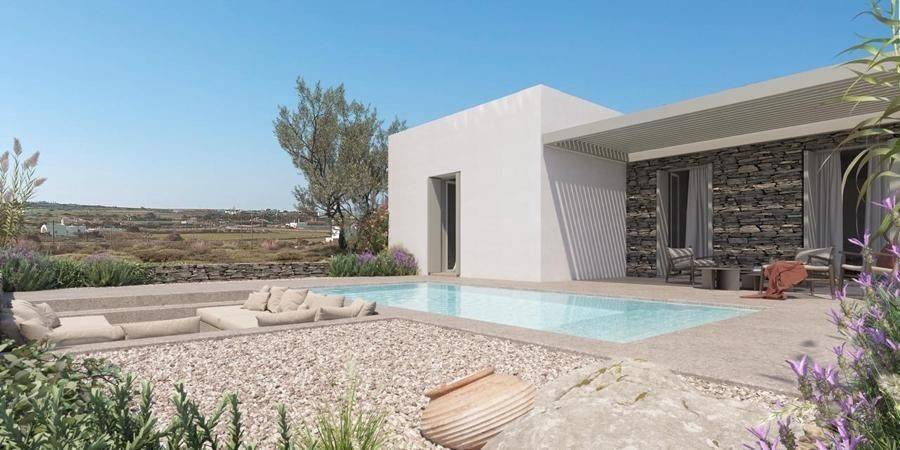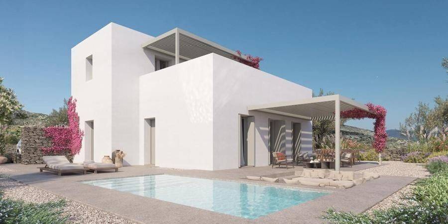 House under construction for sale by SCOPAS REAL ESTATE & CONSTRUCTION. Ground floor house of 144m2 in a complex of 8 properties, in southwestern Paros, in the area of Glysidia near Punda. The property consists of a living room area , a dining room, a kitchen, 3 master bedrooms and 3 bathrooms. Outside it includes a garden, a parking space, terraces, a private pool of 18m2 and an engine room of 8.55m2. Suitable for holiday or permanent residence as well as for investment. Western orientation overlooking the sea and Antiparos Island. Accessible by paved road, 600m from the sea, 2km from the port of Punda, 6km from the airport, 7km from the port. The information and characteristics of the properties have been entered based on the information and data provided by the principal. -The point on the map does not correspond to the real address of the property. -When indicating the property, a identity card or VAT number is necessary, according to Law N.4072/2012 - Official Gazette 86/A/11-4-2012.