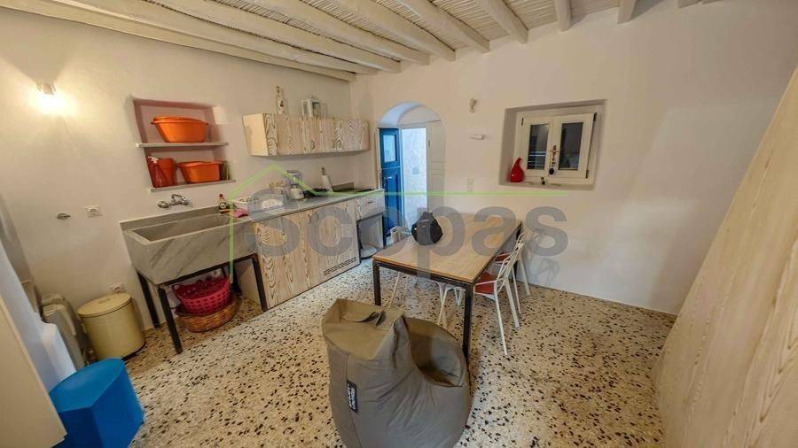 House for sale by SCOPAS REAL ESTATE & CONSTRUCTION. Two-storey house with a total area of 62.73m² in Antiparos Town (Chora). The ground floor comprises a kitchen/living room area and one bathroom; on the first floor, there is one bedroom and one bathroom. Ideal for a permanent or holiday home in the picturesque Cycladic landscape. South-facing orientation. Accessible from a pedestrian street, 280m from the nearest beach. The information and characteristics of the properties have been entered based on the details provided by the principal. - The point on the map does not correspond to the actual address of the property. - When viewing the property, an identity card or VAT number is required, according to Law N.4072/2012 - Official Gazette 86/A/11-4-2012.