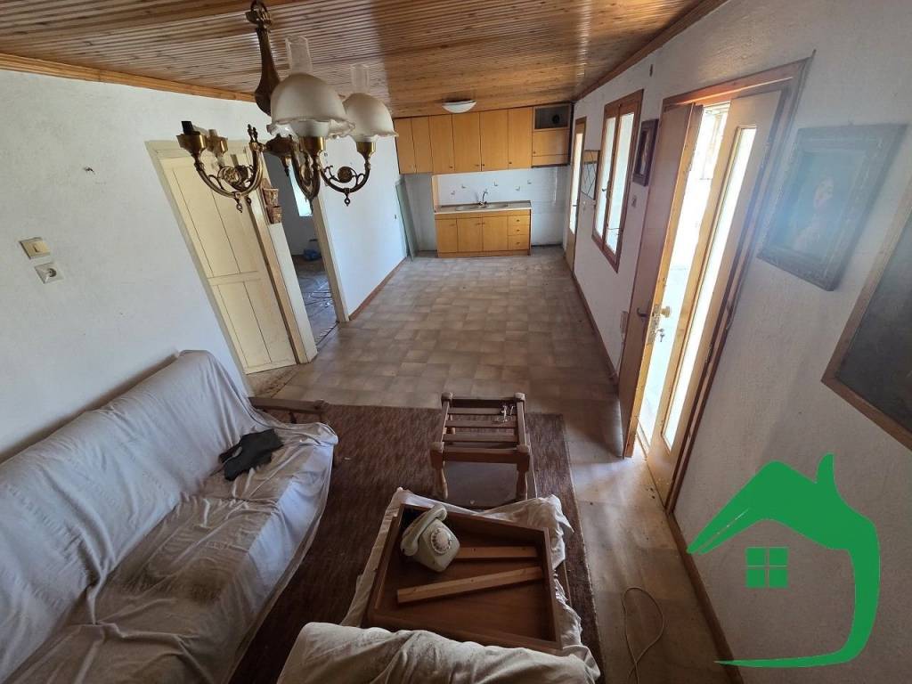 SOSANDRA, N/A 128 sq.m. in 1.344 sq.m. plot, 2 levels, 1st floor, at residential area, year of construction 1942, chrizei episkeyon, with view anoichtosia, 2 b/r, living room, bathroom, kitchen, double-sided, front facing, bright, corner, heating choris thermansi, with energy class I, with floor type n/a, with xylina joinery, single glass pane, veranda, garden, open garage, price 40.000€, code 1355