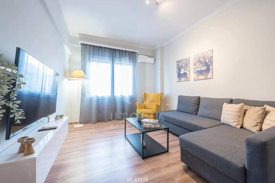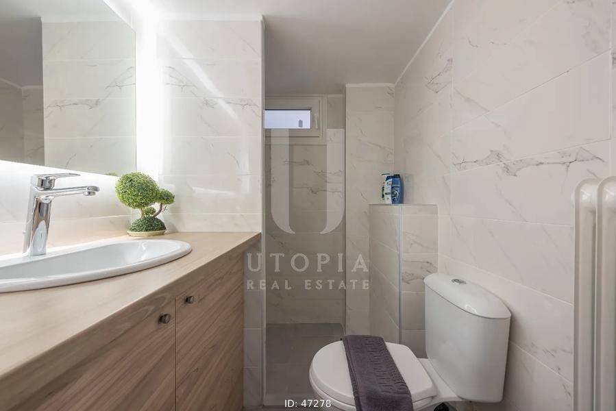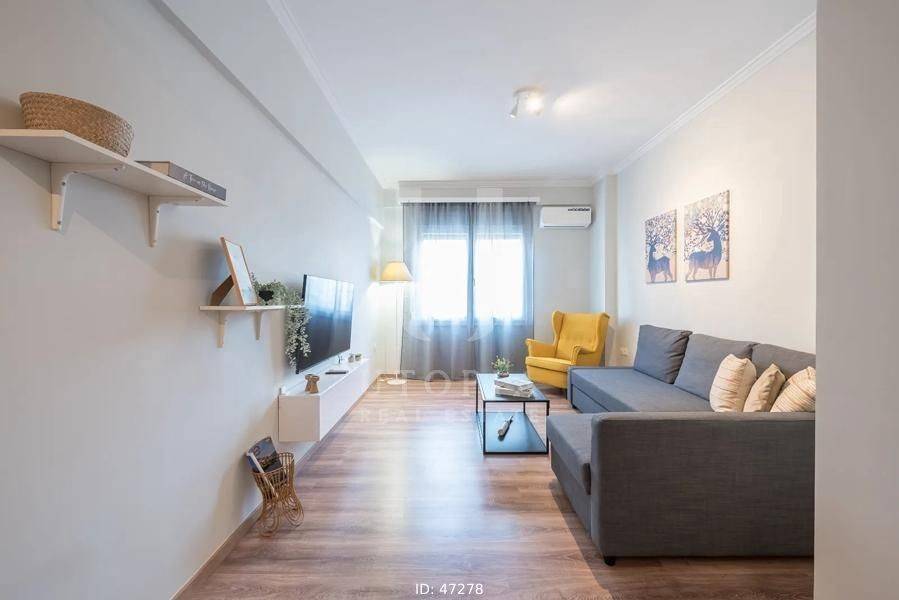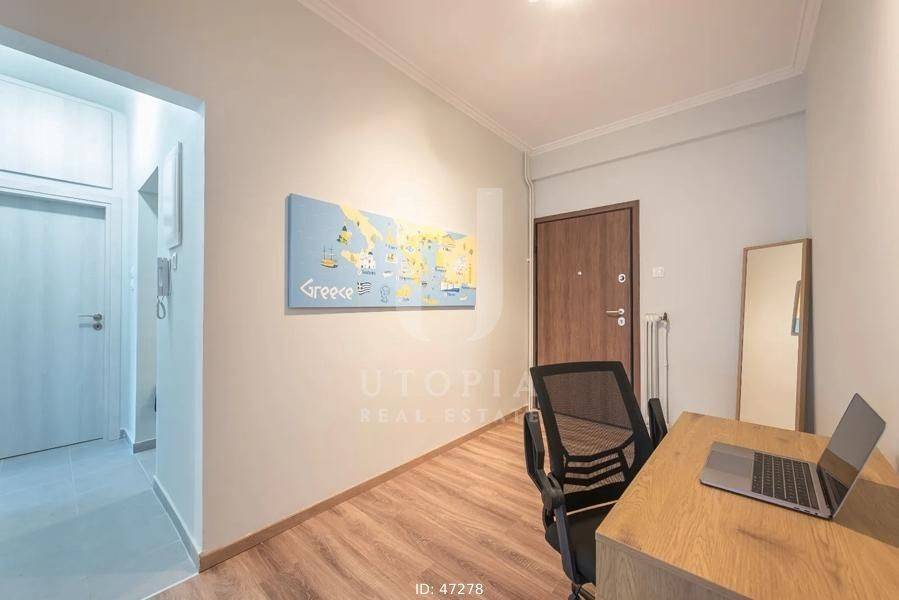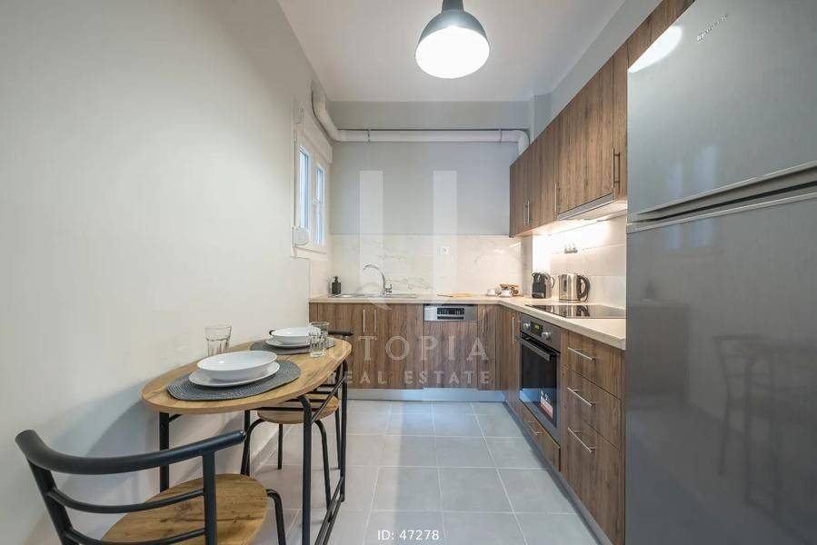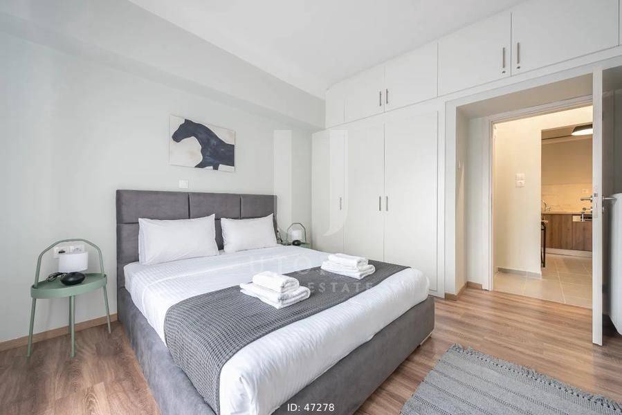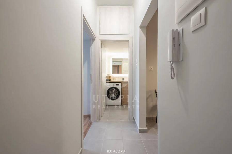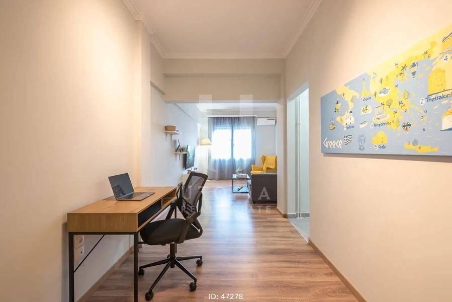 Platia Vathis - Apartment 56sqm fully furnished, bedroom, levels 1, 5th, renovated, year built 1980, renovation year 2025, energy class D, living room, hall, kitchen, bathroom, heating type: no heating, air condition, quiet, dual aspect apartment, luminous, unobstructed view view, frontage, balconies, large balconies, tents, elevator, aluminum frames, double glazed windows, ceramic tiles floors, residential zone, access from asphalt, investment property, special offer, close to market (up to 500m).