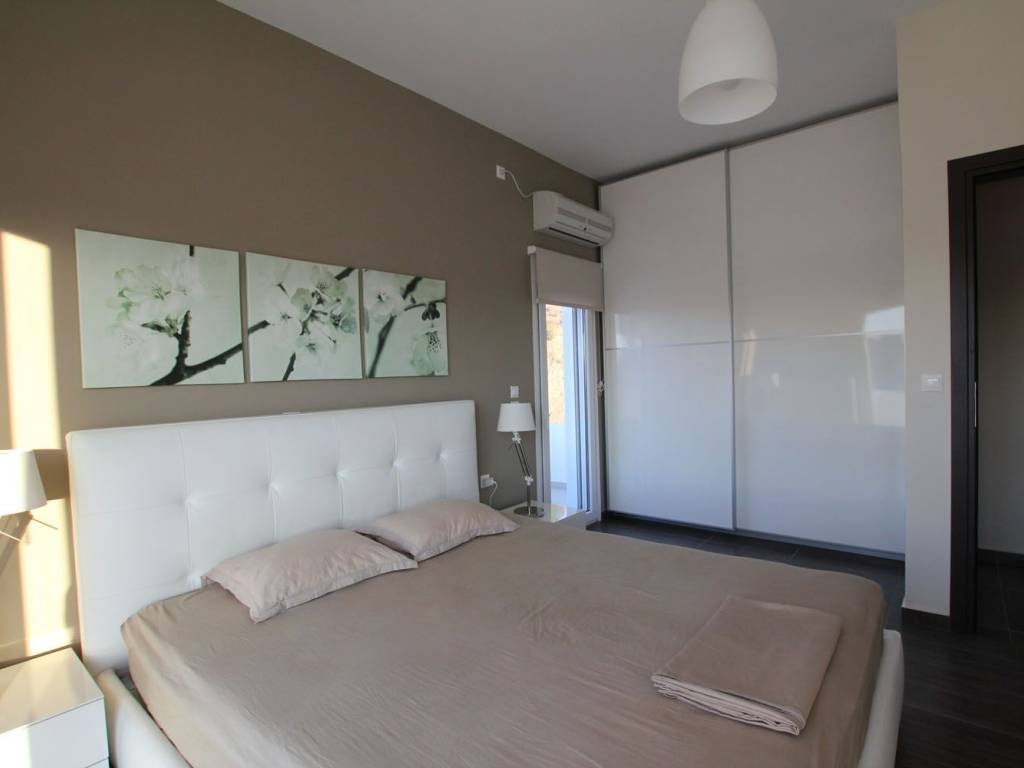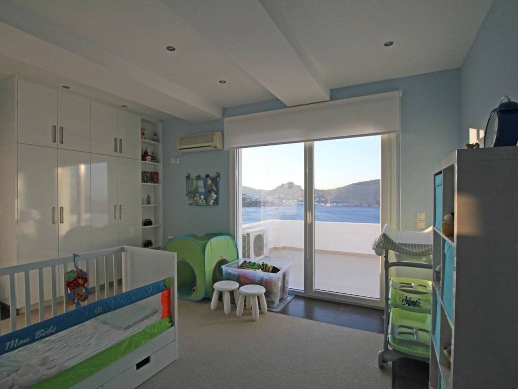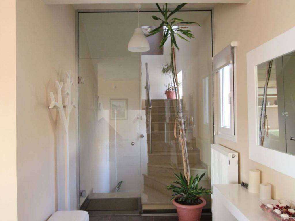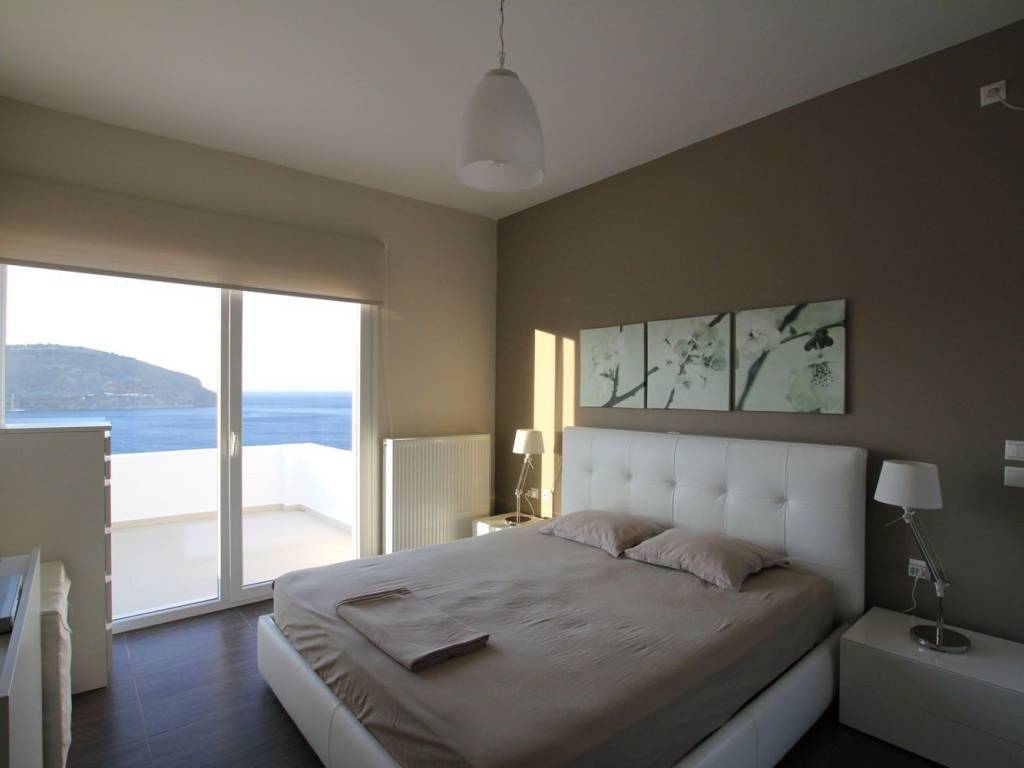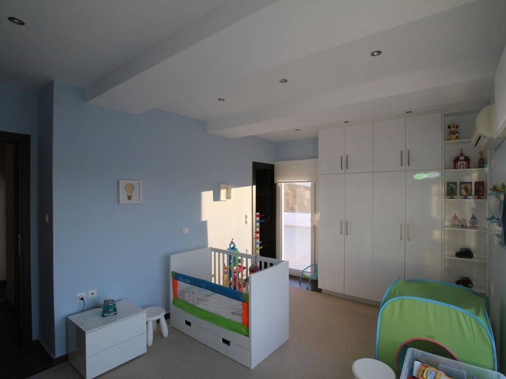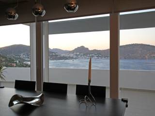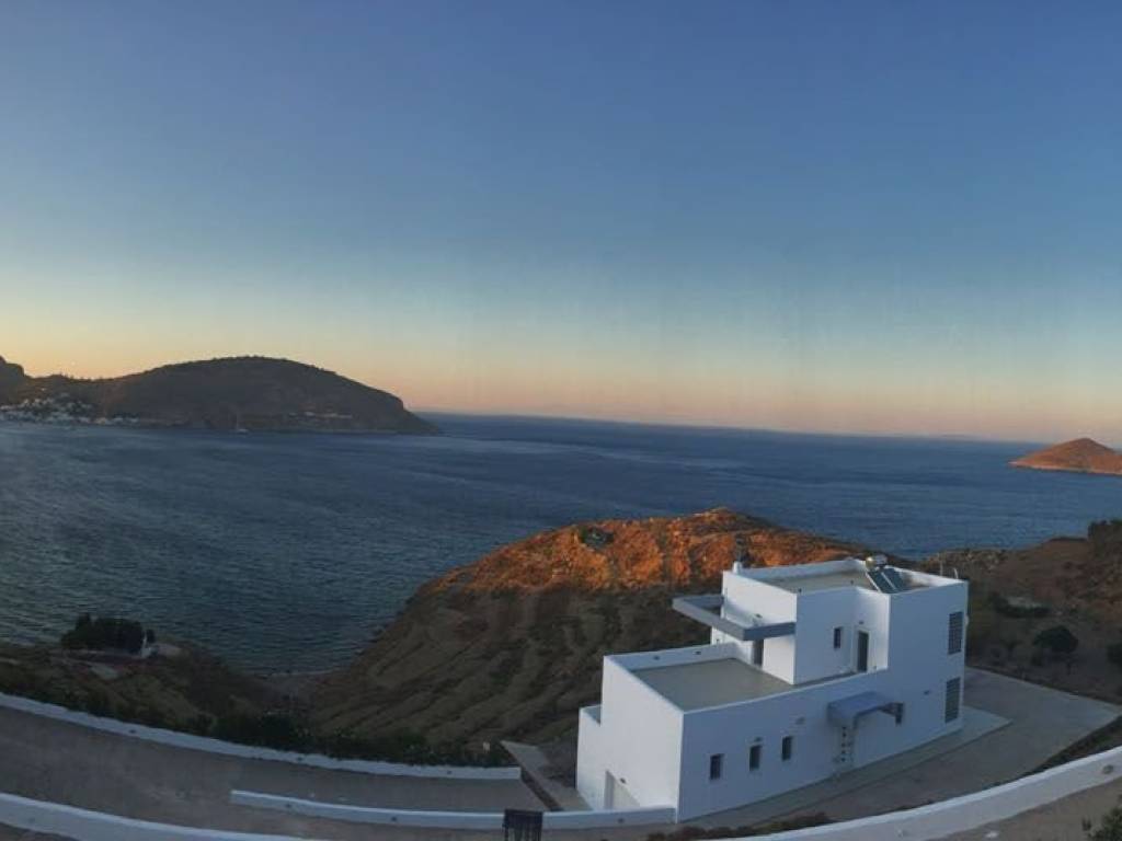 Really unique property in many ways: Amazing view of Pandeli, the castle, the old mills, Agia Kyriaki, Vromolithos….. Easy access to a (virtually) private beach Modern architecture, but still fits amazingly in the landscape Big spaces, a lot of room (330m² in total, of which 140 m² storage (underground)) Unique large windows, so you don’t have to sit outside to enjoy the view Large terraces Very well constructed, with all modern facilities 3 bedrooms, 2 bathrooms Double garage and a lot of storage space