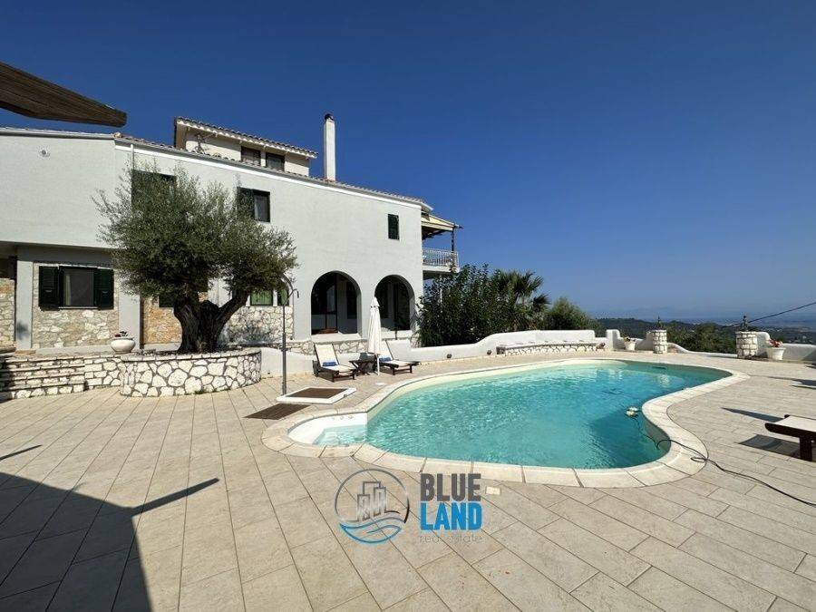 Available for sale is a luxury villa of 340 sq.m., in Katouna Lefkada, which is located on a plot of 4000 sq.m. with a view of the sea. The property has an additional building of approximately 110 sq.m., while outside there is a guest house of 15 sq.m. The year of construction is 2010. Specifically, the building consists of 3 levels and an attic, which due to the sloping ground all have access to the plot with an independent door. Initially, the third level has a living room, kitchen, dining room, office with sea view, independent veranda, fireplace and has direct access to the parking, the outdoor bbq area and the guest house. In addition, the second level consists of three Master bedrooms and direct access to the pool,while the first is an independent apartment, which includes a kitchen, living room, bedroom, bathroom, storage and has access to the entrance of the plot. The luxury villa has aluminum frames, screens, solar water heater, double glazing, fireplace and alarm. Outside, a private chapel is located on the plot, while the area has a large garden and lawn with automatic watering, a swimming pool and a parking space Price: 1.300.000€. Blueland real estate, Tel: 2611811812, email: blueland.patra@gmail.com