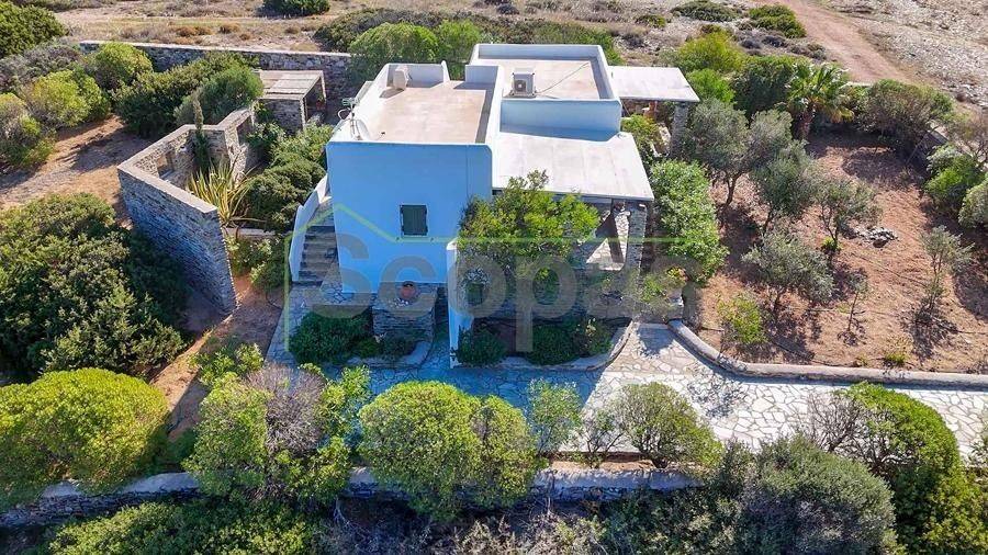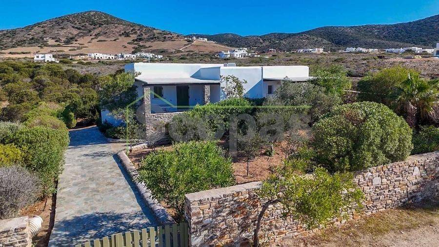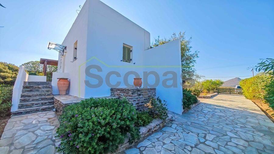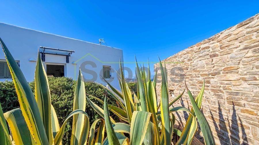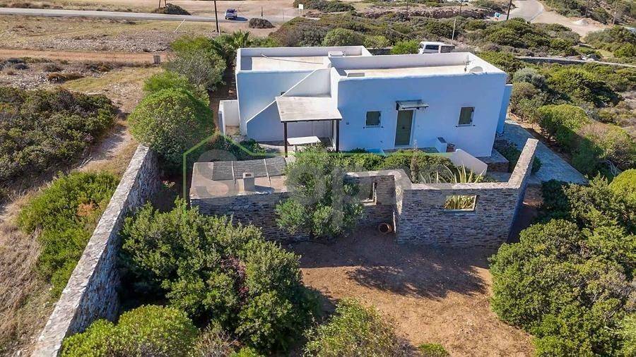 Detached residence available for purchase through SCOPAS REAL ESTATE & CONSTRUCTION. The property comprises a ground-floor dwelling of 82 square meters situated on a 1,000 square meter plot, located on the southern perimeter of Antiparos, within the district of Agios Georgios. This estate includes two bedrooms, two bathrooms, a kitchen, and a living room. Externally, the property features a garden, three spacious terraces, and parking facilities. Additional amenities include a 45-square-meter water tank, a storage room, and a barbecue area. There is potential for an additional 220 square meters of construction. This property is ideally suited as a summer retreat or as an investment opportunity within the scenic Cycladic landscape. The residence benefits from a southern orientation, offering views overlooking the Antiparos Channel and Despotiko Island, complemented by stunning sunsets. Access is provided via a dirt road. It is located 700 meters from the beach and 11.5 kilometres from the port of Antiparos, as well as from the charming alleys of the traditional settlement. The property information and details have been provided based on data supplied by the owner. - The location marked on the map does not correspond to the property's actual address. - When indicating interest in the property, a form of identification or VAT number is required in accordance with Law N.4072/2012 - Official Gazette 86/A/11-4-2012.