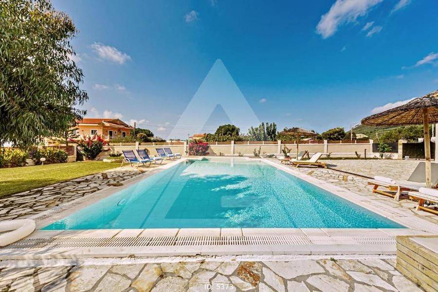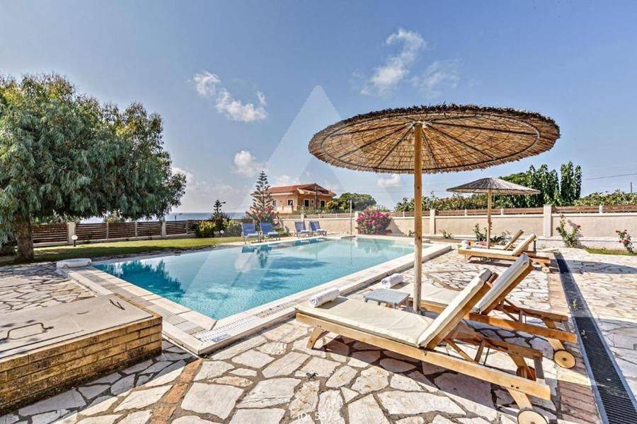 Melitiis, Agios Mattheos - Villa 210sqm plot 2000sqm, bedrooms 4, master bedroom, excellent condition, year built 2001, energy class D, living room, kitchen, 2 bathrooms, heating type: autonomous (oil), air condition, quiet, luminous, sea view, frontage, storage space 20sqm, solar heater, boiler, garden, garden 20sqm, built in appliances, aluminum frames, wood floors, without common charges, luxurious, swimming pool, private pool, barbeque, guest house, residential zone, investment property.