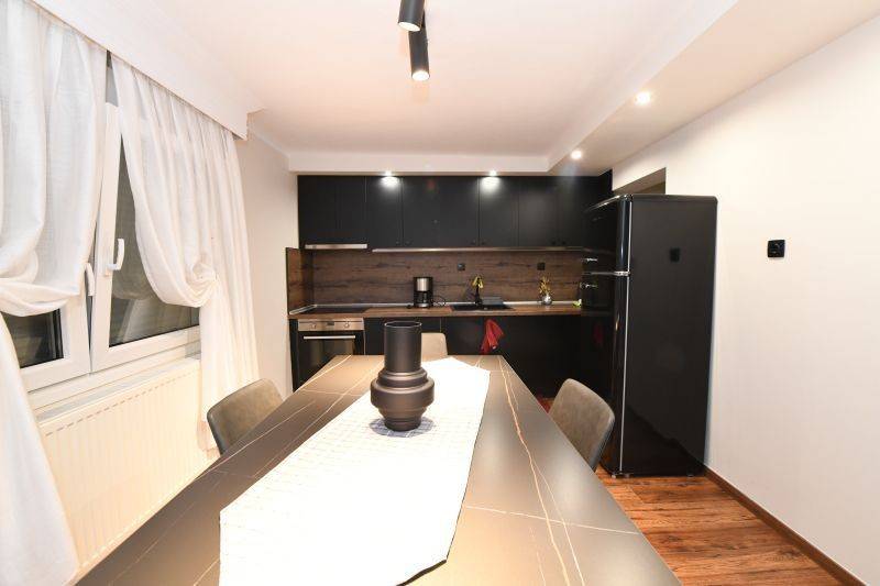 Apartment ground-floor 116s.qm. in the area of Agios Antonios of the city of Serres. It was fully renovated in 2017 and is facaded and bright. It consists of two bedrooms, a living room with a fireplace, an open plan kitchen with a dining room and a bathroom. It has granite tile and laminate floors and external synthetic frames with double-glazing. It has an individual oil boiler, a boiler, a solar panel and an air conditioner. The building is clad with thermal insulation, the roof is thermally insulated and the building is waterproofed. In the courtyard there is a warehouse. This is a very stylish property, in an excellent location, built with high-quality materials in the city center and there are schools of all levels in the area. For the indication of the property it is necessary to present your identity card.