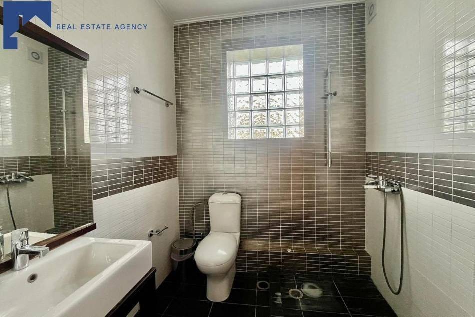 Vari-Miladeza, a luxurious detached house of 450 sq m, consisting of ground floor, 1st floor, attic and playroom is available for rent. It comprises very large reception areas with fireplace, spacious, independent kitchen with electrical appliances, 5 bedrooms (one master with its own bathroom, walk in closet and fireplace), 5 bathrooms (with 2 hydromassages) and wc. In the playroom there is a maid's room with its own bathroom and at the attic there is a very large veranda with bbq, a sitting area, wc and unobstructed view. The house has large verandas, elevator, security door, aluminum frames with double glazing and screens, solar, alarm, air conditioners, autonomous oil heating per floor, storage spaces, 1 closed parking space and 3 open ones. It has a shared, large swimming pool and its use is optional. It is ideally located with direct access to central roads, supermarkets and all kinds of shops. It is also suitable for commercial use, like company's office. The location on the map is indicative. Contact phone: +30 6944772536, website: www.merryland.com.gr, Email: sotiropoulou@merryland.com.gr, Id: 18100