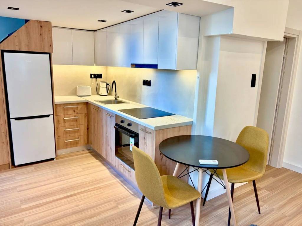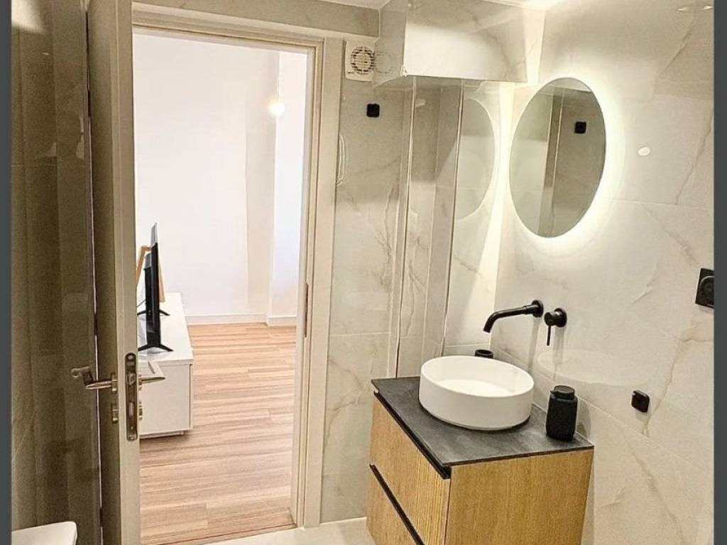 Ορίστε η μετάφραση: Ultra-luxury renovation, fully equipped and furnished over 2 levels. Brand new electrical installations, wiring, lighting, LED strip lights, plumbing, tiles, bathroom, LED-lit mirror, and internal staircase. Includes brand new appliances: washer-dryer combo, total no-frost refrigerator, stove, small kitchen appliances, smart TV, and 2 A/C units. The upper level features a double bed with under-bed storage, a brand new orthopedic mattress, bedside tables, and a wardrobe with lighting. The lower level has an Italian sofa with an extendable footrest, a coffee table with chairs, a rug, and furniture. Security door with aluminum cladding, water heater. Private entrance with a small front balcony, no shared expenses. It is a small apartment ideal for one person or a couple — a completely new loft where the upper level with the bed and wardrobe is 10 sqm with wooden flooring, and the lower level is 32 sqm. Total area: 42 sqm across both levels. With a separate space for the washing machine and a small storage area within the bathroom. The property is just 900 meters from the Metro and right next to Vokos Park. It is 50 meters from Petrou Ralli Avenue. Right outside the building there is a bus stop, a supermarket, and a market.