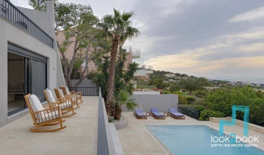 In Saronida, Stunning Detached House, 370 sq m, renovated, furnished, unique, minimal, bright villa with large private pool and unobstructed view. The villa has a total area of ​​370 square meters, 2 levels (ground floor and first floor) and has 5 bedrooms, 5 bathrooms, 1 WC, 2 living rooms, 1 kitchen, autonomous oil heating, air conditioning, solar water heater, fireplace, security door, alarm, cameras, video intercom, double glazing, aluminum frames, screens, spacious verandas with wonderful mountain and sea views, storage room and large outdoor area Elevator, Security Door, Alarm, Night power, Satellite Antenna, Playroom, Internal Staircase, Double Glazing, Screens, Verandas, BBQ, Pets Allowed, Furnished, Luxurious, Frontage, Bright, Air Conditioning, Solar, Swimming Pool, Garden, price: €8,000, Ref. : 40481, Look2Book Tel: 2108940006, e-mail: info@look2book.gr, website: www.look2book.gr