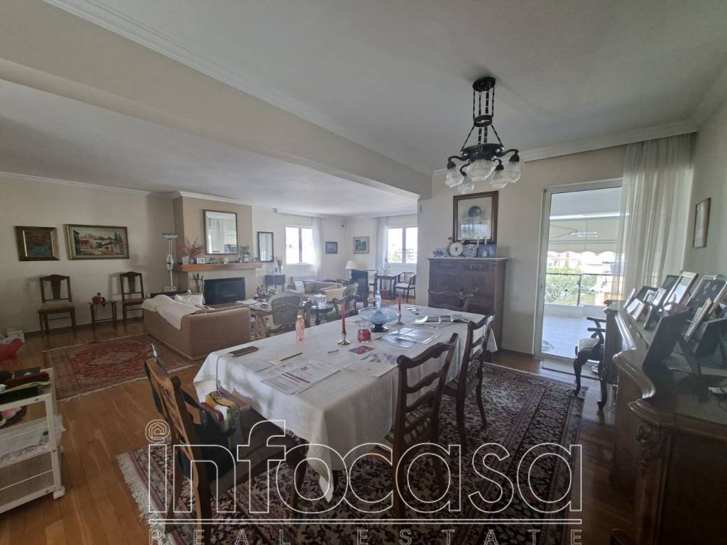 Chalandri: Excellent 143 sq.m. fourth-floor apartment that combines comfort, functionality, and an outstanding location. The property consists of three bedrooms, one of which is a master bedroom, two bathrooms, one WC, and a spacious kitchen. It also includes a parking space in the pilotis and a storage room. Built in 1992 and in very good condition, the apartment features autonomous oil heating, aluminum window frames with double glazing, wooden floors, a security door, alarm system, and intercom. Additionally, it has a very large balcony with a beautiful view of the mountains and greenery, as well as insect screens and awnings. It is located very close to public transport, Chalandri square, supermarkets, and shopping centers. Price: €530,000 Contact person: Katerina Kogia Phone: +30 6974040009 – +30 2106233945, email: info@infocasa.gr