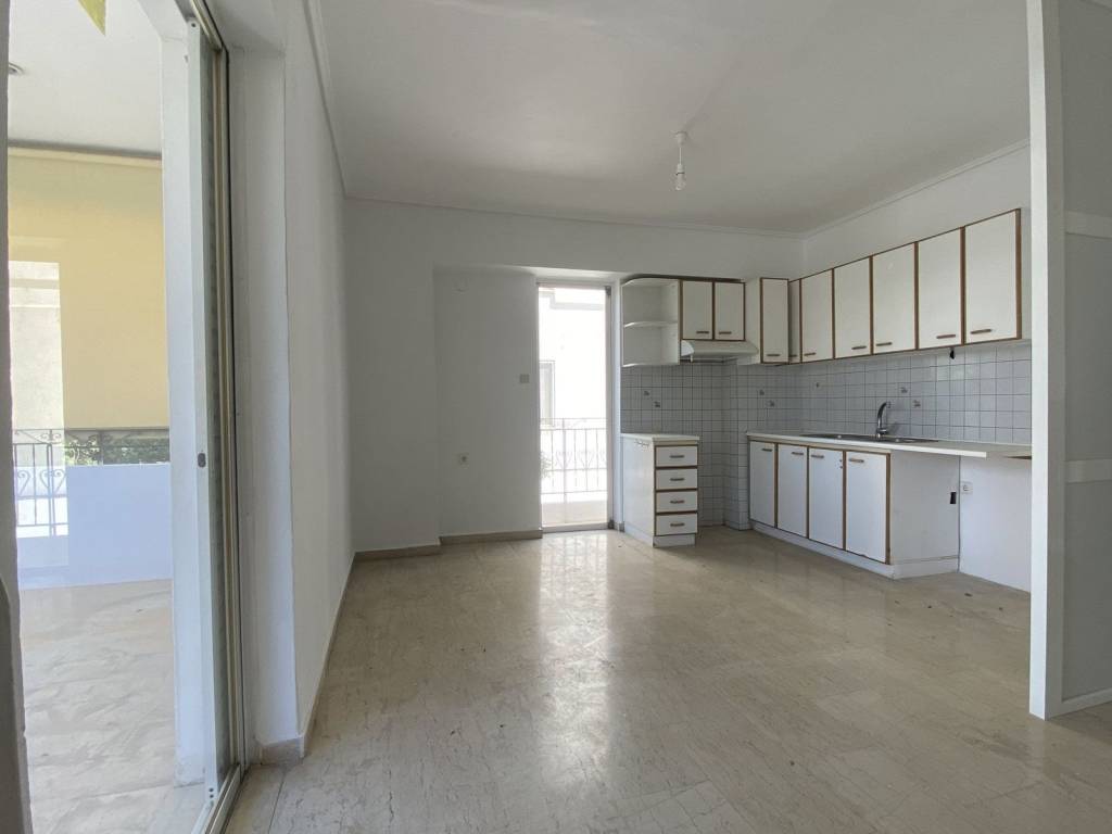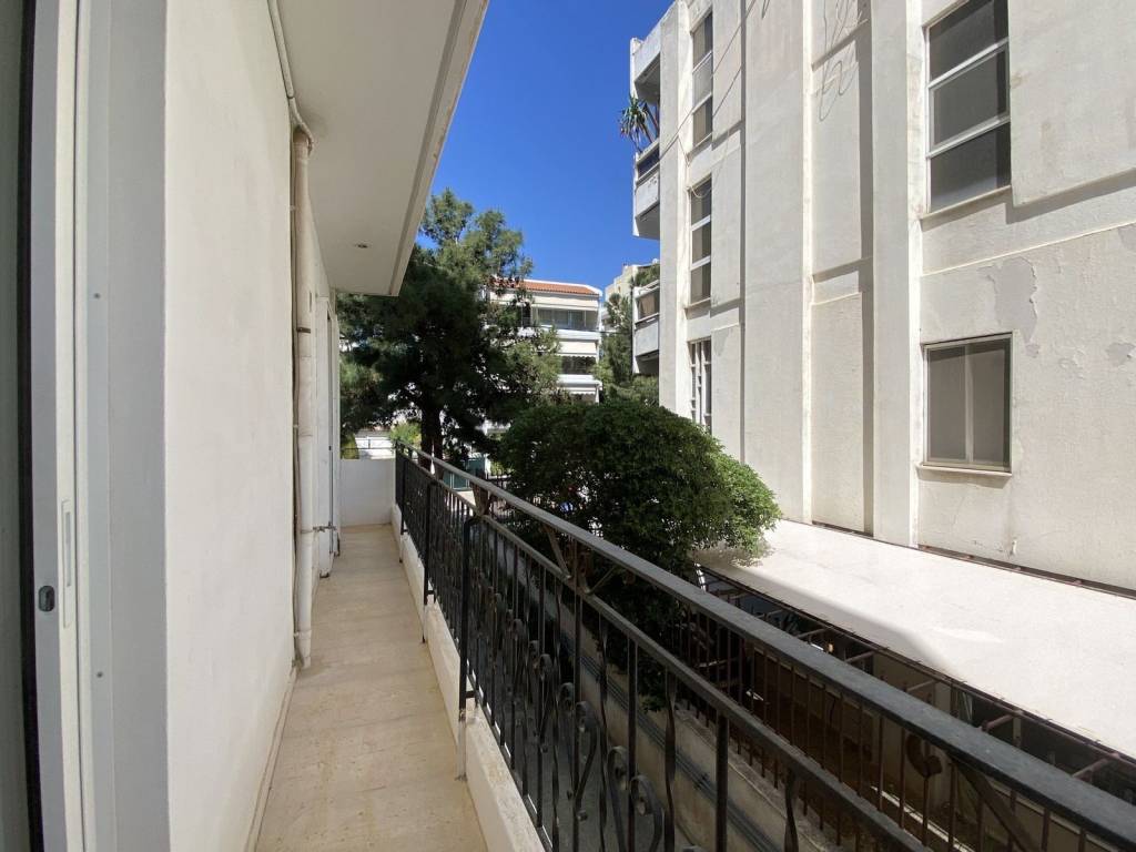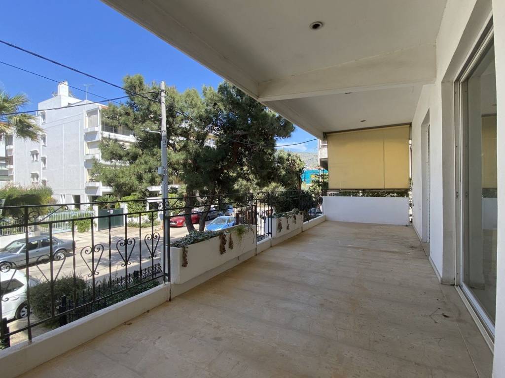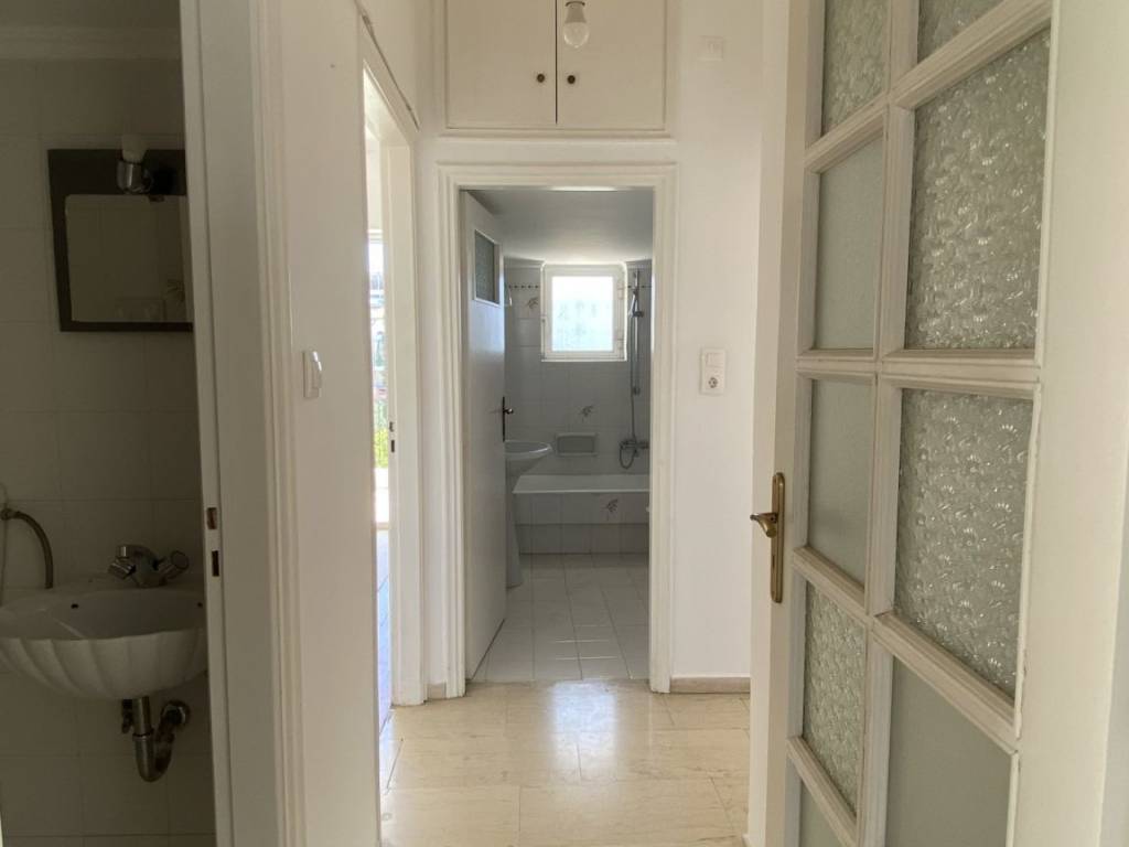 This floor apartment is located in Glyfada, one of the most popular residential areas of the southern suburbs of Athens. The residence is situated on the first floor and offers a total interior area of 104 sqm. The layout includes three bedrooms, one bathroom, one guest WC, a spacious living room and a separate kitchen, making it suitable for comfortable family living. The apartment is front facing and benefits from large verandas, allowing abundant natural light and pleasant open views towards the mountain. Additional features include autonomous natural gas heating, providing fast and efficient heating with hot water availability throughout the day, fireplace, boiler, elevator access and a security entrance door by Balomenos Doors. The property also includes one pilotis parking space, aluminum window frames, marble and wooden flooring and has been freshly painted. Monthly building expenses are approximately €40.