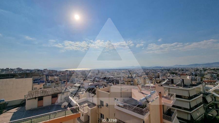 Agios Dimitrios (Attica - Southern Suburbs) - Apartment 85sqm bedrooms 2, levels 1, 4th, penthouse, excellent condition, year built 2002, energy class C, living room, kitchen, bathroom, heating type: autonomous (oil), air condition, parking ground floor, quiet, dual aspect apartment, luminous, corner, unobstructed view, frontage, painted, drop ceiling, storage space, solar heater, boiler, fireplace, balconies, large balconies, tents, elevator, loft storage, garden, private terrace, terrace 90sqm, built in appliances, aluminum frames, double glazed windows, ceramic tiles floors, three phase electricity, night electricity discount rate, secure door, alarm, video doorbell, satellite, pets allowed, residential zone, access from asphalt.