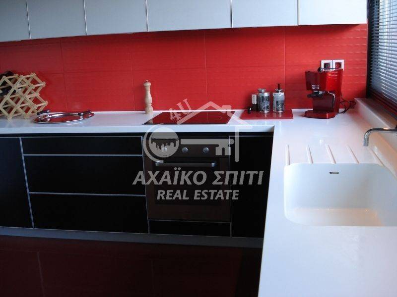 Rio- Agios Vassilios. for sale autonomous maisonette 205sq.m. 3 levels of ultra-luxurious Modern mixed anti-seismic construction in a complex of 4 houses on a plot of 250sq.m .. 1st level 80sq.m. consists of 1 spacious bedroom, living-dining room, separate kitchen, w / c, fireplace, large terraces. In front there is a terrace with a parapet in the dining room and a pool in front of the living room and large openings for natural light. 2nd level 40sq.m. Consists of 1 very spacious bedroom, master bath (jacuzzi-hydromassage) and dressing room, (It has a large terrace overlooking the bedroom, about 40sqm and smaller in the bathroom for natural light ventilation) Basement 80sq.m. on the facade which on the uncovered is ground floor with large openings for natural lighting of an area of ​​about 80sqm of open space with water supply and sewerage for any layout. It has Energy windows, Corian kitchen counter, bathtub and sinks. Central heating and cooling units, Electric garage doors, private small pool, solar panel, boiler, alarm, barbecue area, many storage spaces. also has a closed garage and panoramic view (patraiko-bridge Rio) 200m. from the beach. Due to construction any layout changes are possible and very easy. Possibility of connection with and with the underground internal staircase sale price 315,000 €. achaiko house real estate patra amerikas 68 tel.2610336023 email axaikospiti@hotmail.com www.axaikospiti.gr