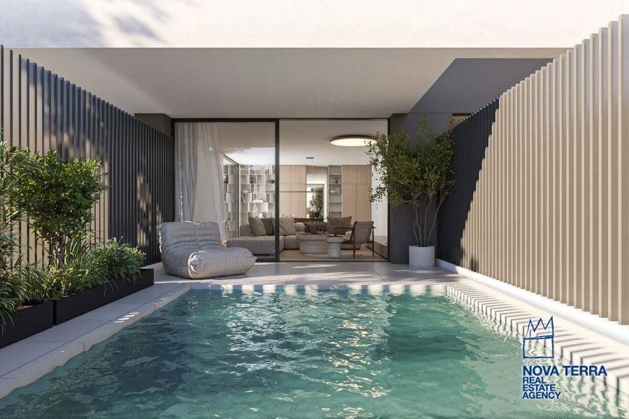 VARKIZA - VARKIZA, Duplex / Triplex Apartment,, Sale, 146 sq.m, year built 2023, 3 rooms, Basement, Ground Floor, 1st, Various Characteristics: Balcony, Bath (2), Escalator, Garden, Kitchen, Living room, Playroom, Store Room, Swimming Pool, Toilet, Master Bedrooms: 2 Master Bedrooms, Heating: Autonomous Heating (auto-system), Floor heating, Access road, Aluminium panels, Bright, Double-glazing, From Side to Side, Luxury, Minimal, Newly built, Painted, Residential area, Security Door, Solar Heating, In perfect condition: Pets allowed: Parking area: Parking, Energy class: A. property ID: 49017, www.nova-terra.gr