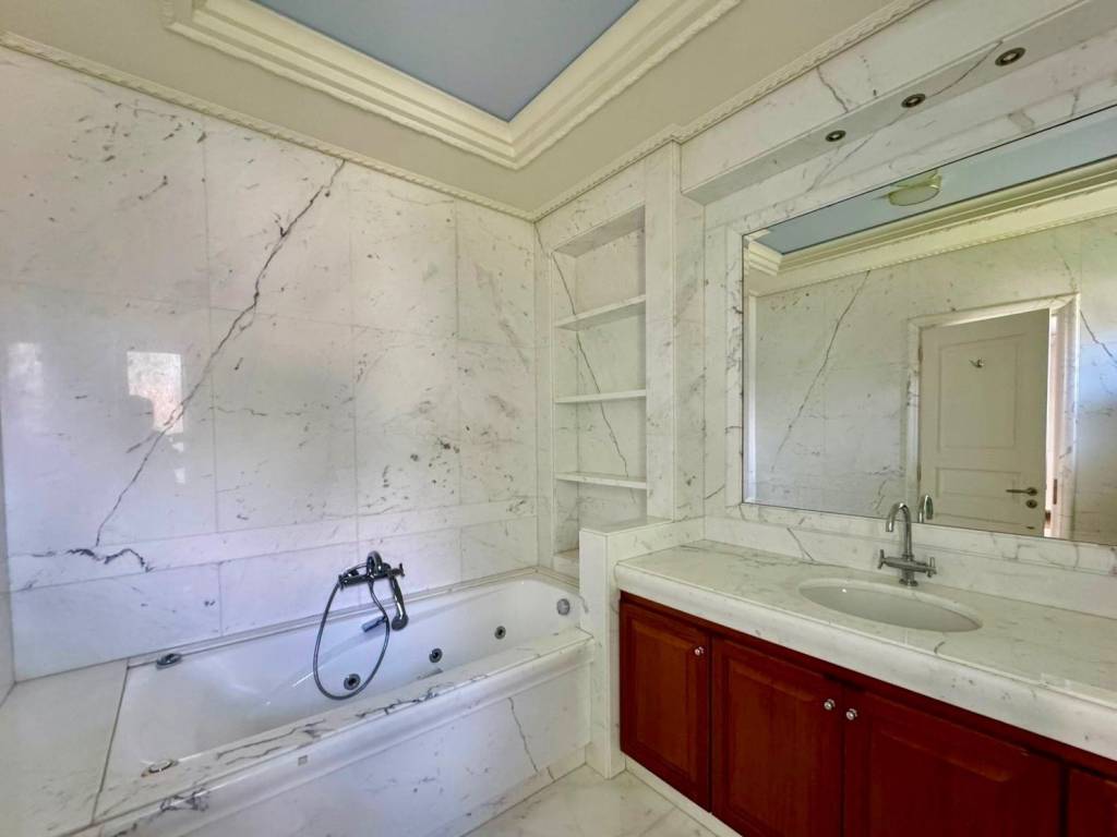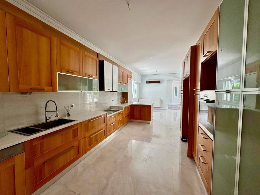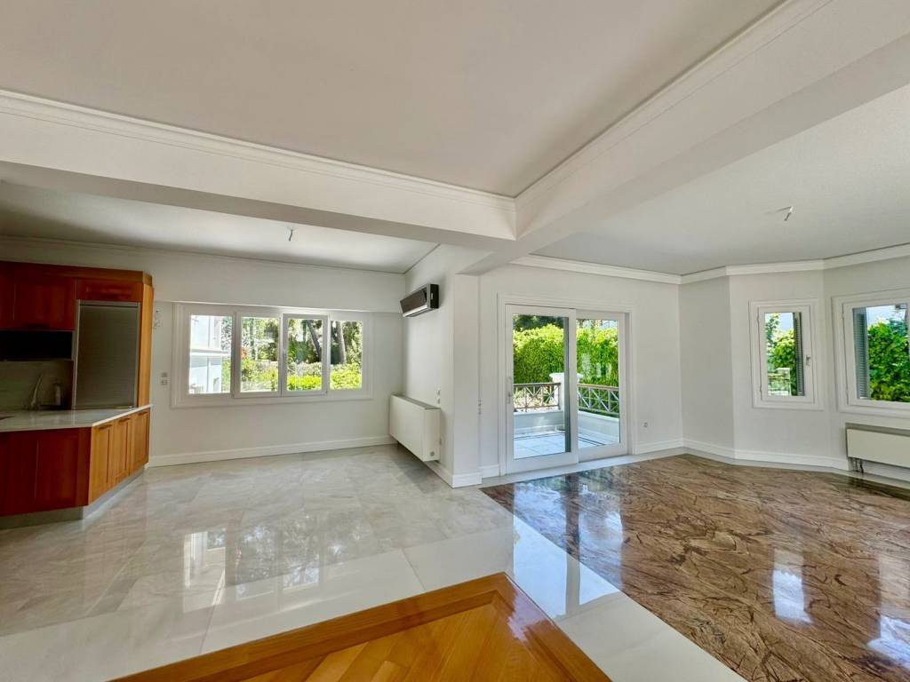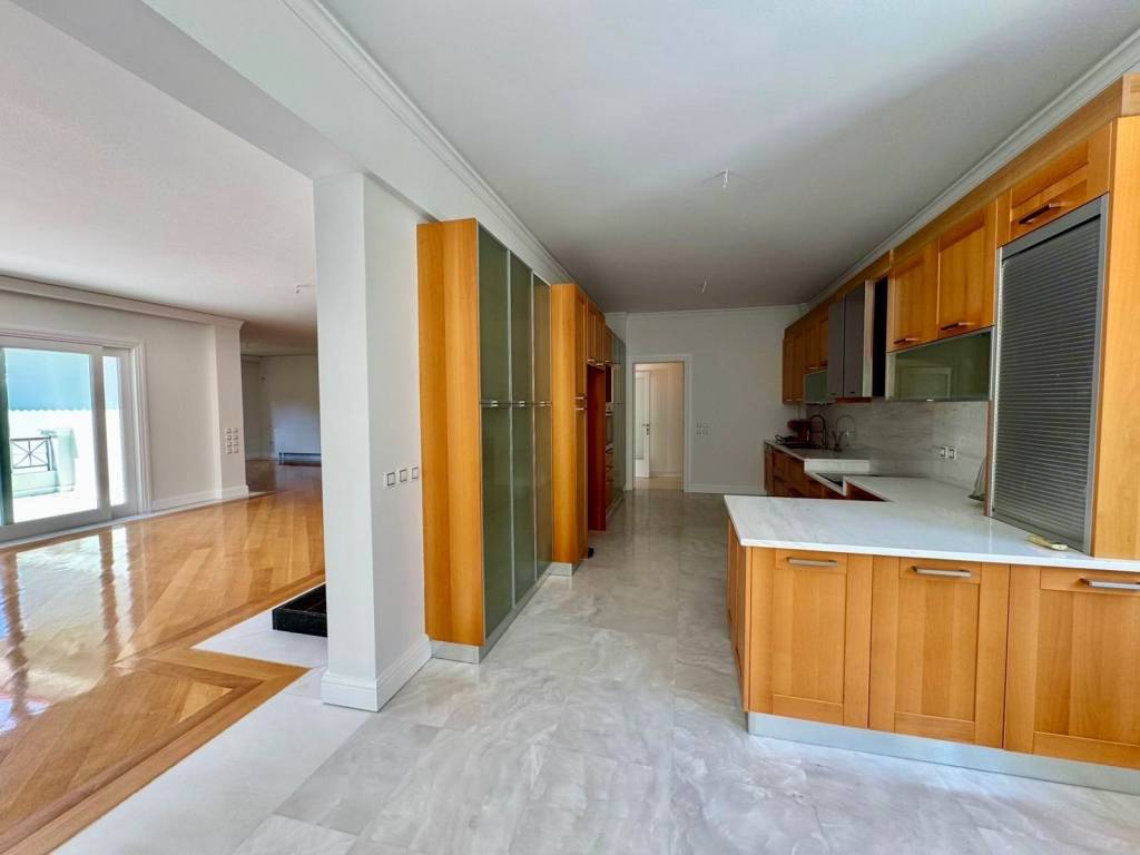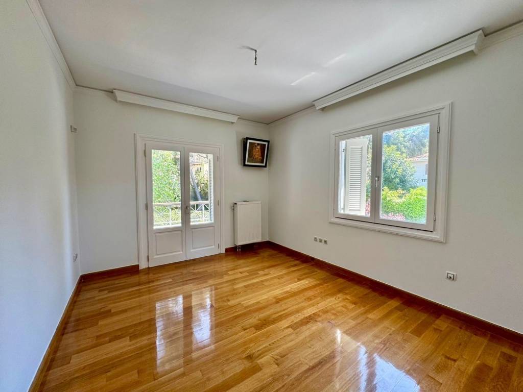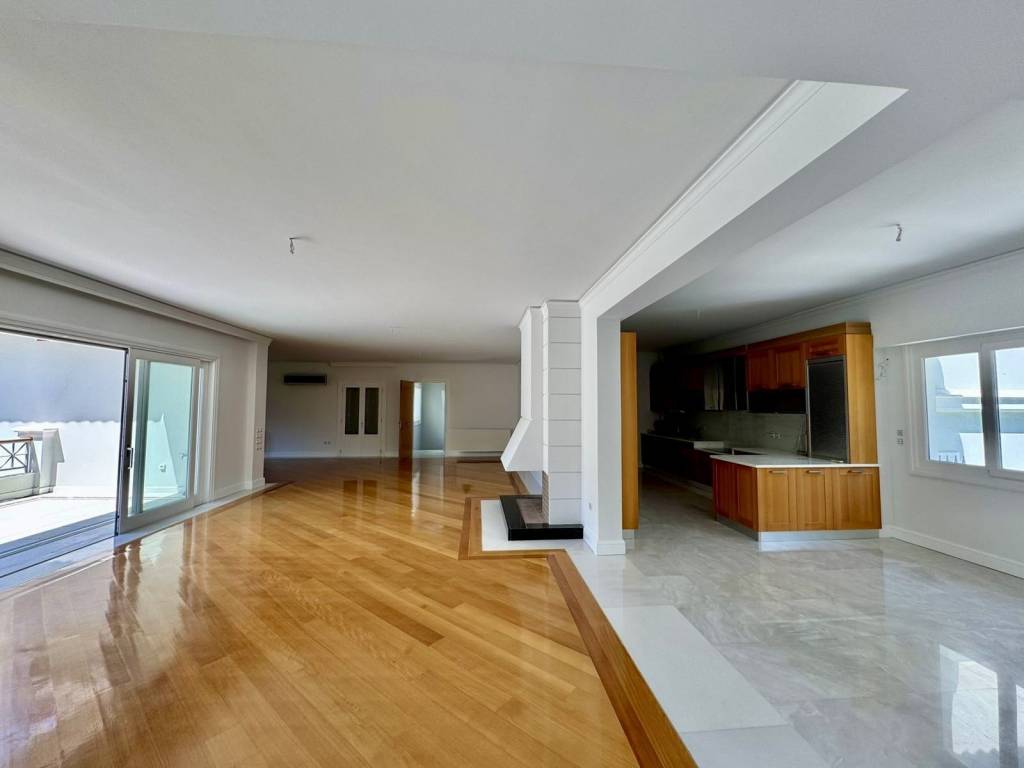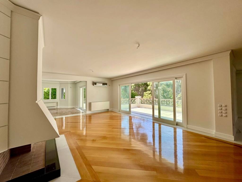 Luxury two-level apartment with a total surface area of 265 sq.m., built in 2012, located in a lush and quiet area of Ekali. The first floor features an impressive, spacious living room with a fireplace, a dining area, and a large kitchen equipped with built-in appliances (oven, cooktops, dishwasher). The living room is fitted with air conditioning units (three in total), as are all bedrooms. On the second level, there are four comfortable bedrooms, two of which are master bedrooms with en-suite bathrooms, as well as an additional bathroom. The property is exceptionally well maintained, featuring oak flooring, marble-clad bathrooms, and a bright, airy atmosphere with large balconies, all surrounded by a beautifully landscaped green garden.