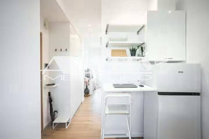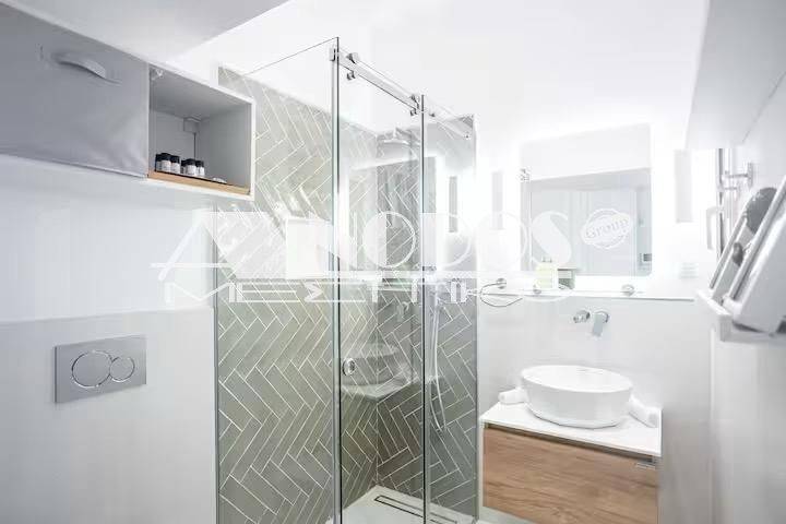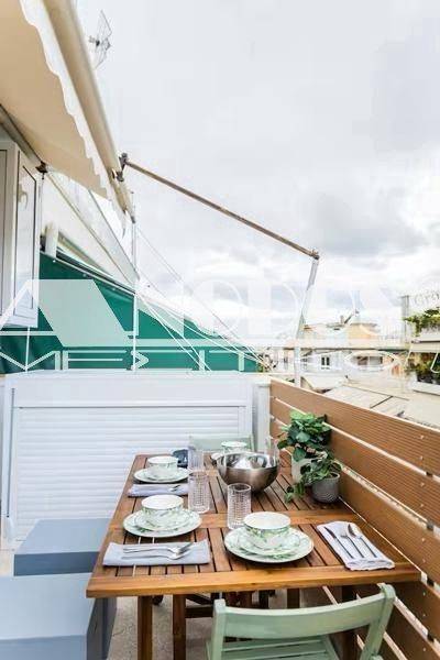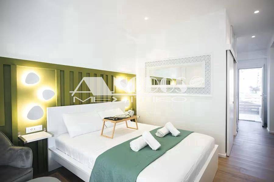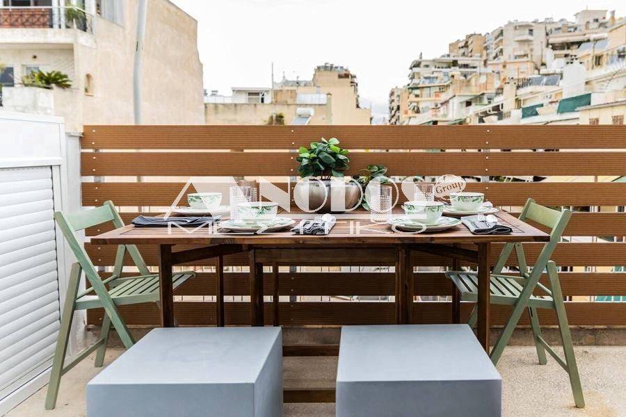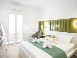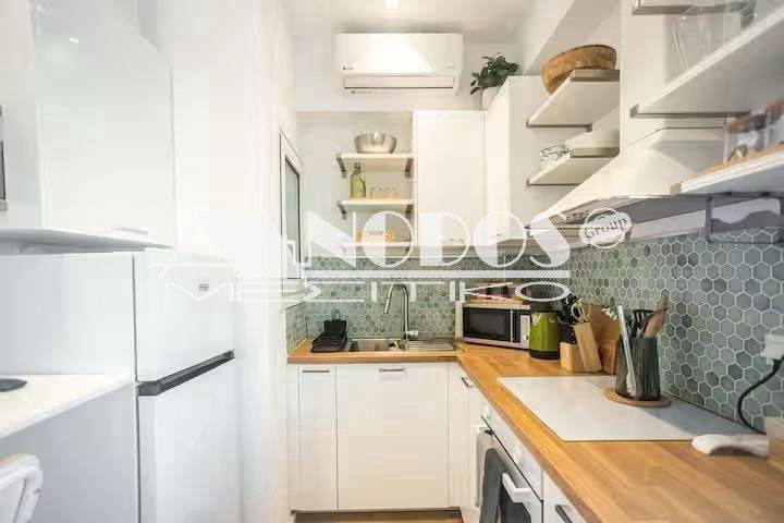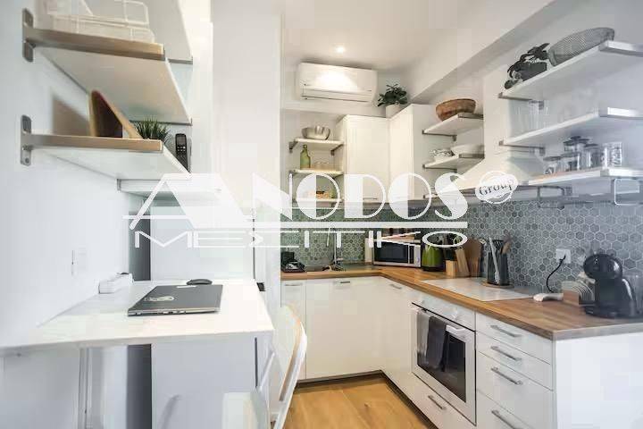 Kypseli, Platia Kypselis - Studio 33sqm fully furnished, 5th, fully renovated, year built 1963, renovation year 2023, energy class D, living room, kitchen, bathroom, heating type: autonomous (air condition), quiet, dual aspect apartment, luminous, frontage, balconies, tents, elevator, aluminum frames, double glazed windows, ceramic tiles floors, secure door, luxurious, pets allowed, residential zone, investment property.