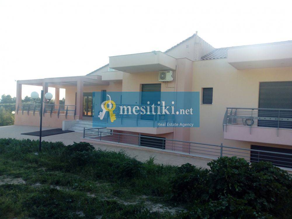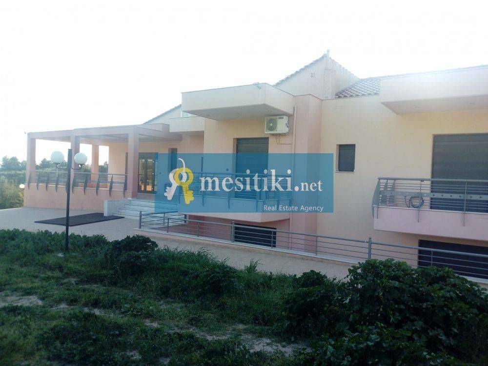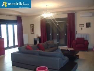 Detached luxury villa 390 sqm (heated space) in gated estate area 9750 sqm. It is classified into two levels with the possibility of full autonomy. In the 1st level, welcomes us with a large sunny and airy living room with fireplace, bar and separate dining area which communicates with the beautiful and highly functional kitchen with plenty of space for a large table for daily family meals. At the beginning of the corridor next to the lift is the guest wc and depth unfold 4 bedrooms (one of them is master room with dressing room and bathroom with air massage, while the remaining bedrooms have fitted wardrobes) and the main bathroom. On the lower level we find a huge living room with fireplace, 1 bedroom, 1 bathroom, laundry room with preinstallation for sauna and jacuzzi, and an internal storage. And 2 levels have access to the garden of the villa while accompanied by several auxiliary rooms, closed five car parking, storage. In the property we find a built gazebo with a wood oven, barbeque and kitchen, for wonderful family moments in the garden. There is possibility of building a pool, tennis court, basketball. For pets there are 2 built houses 10sqm each. The property has a synthetic, thermal break frames with callable and folding, electric security shutters, screens, some windows are bulletproof. Terribly economical geothermal heating, fire detection and ydranichnefsis, alarm with 10 eyes and four control points, alarm, video surveillance with 7 cameras, central vacuum system, drilling of drinking water and biological filtration. A truly unique proposition that characterizes the excellent build quality (it is worth noting that the property specifications to shield against earthquakes up to 10 Richter and foundation for 6 floors) and invites you to discover in Thermi Plagiari.