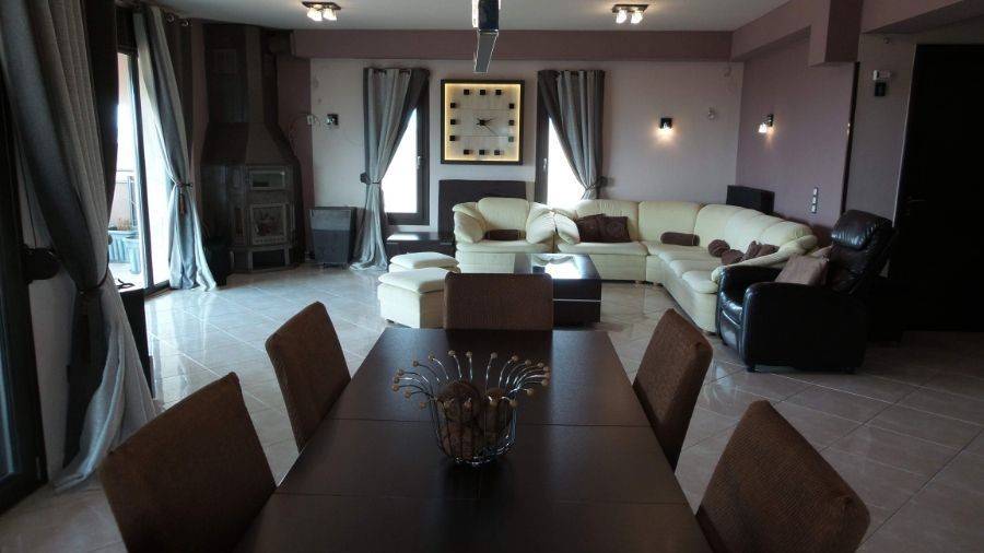 Newly built luxury villa with incredible views of the mountain and sea with unique innovations in all areas of construction and technology. INSULATION: Heat-insulated with seismic wall-brick-like brick type 25 centimeters and 10 centimeters Extruded polystyrene, resistant to temperatures of 45 degrees Celsius STABILITY: Study for 7-storey building FLOOR: Granite tile ROADS: All made of marble porcelain. EXTERIOR DOORS: Security on all 2 entrances. FIREPLACE: Cast iron & energy with oven OUTDOOR FRAMES: Aluminum INTERIOR DOORS: Massif beech ITALY EXTERIOR BALCONIES: Aluminum ALARM & CAMERAS TELEPHONE & INTERNET NETWORK ELECTRICAL TABLES: PLC-smart home ISOG: 103 m2 1st: 92 m2 2nd: 92 m2 3rd: 92 m2-Attic WATER DRYING WITH NETWORK PETROLEUM POWER GENERATORS HEATING: Oil + Heat Pump + Energy Fireplace. BUS STATION: 500m BATHROOM SUMMER: 1000m DRAINAGE NETWORK: EL100 tubing Φ100 and before the 48m2 pitch are: F125 ELOT heavy duty. WAITING WELL FOR ELEVATOR. THE INTERIOR AND EXTERIOR STAIRS CONSIST OF POROLITE MARBLE. STORAGE OF 1 TONNES OF DRINKING WATER INSIDE THE STAIRSTYLE WITH PRESSURE ASSEMBLY FOR FULL AUTONOMY. SEWERAGE CEMENT 50 SQ.M. CONCRETE AND DRAINING SYSTEM.