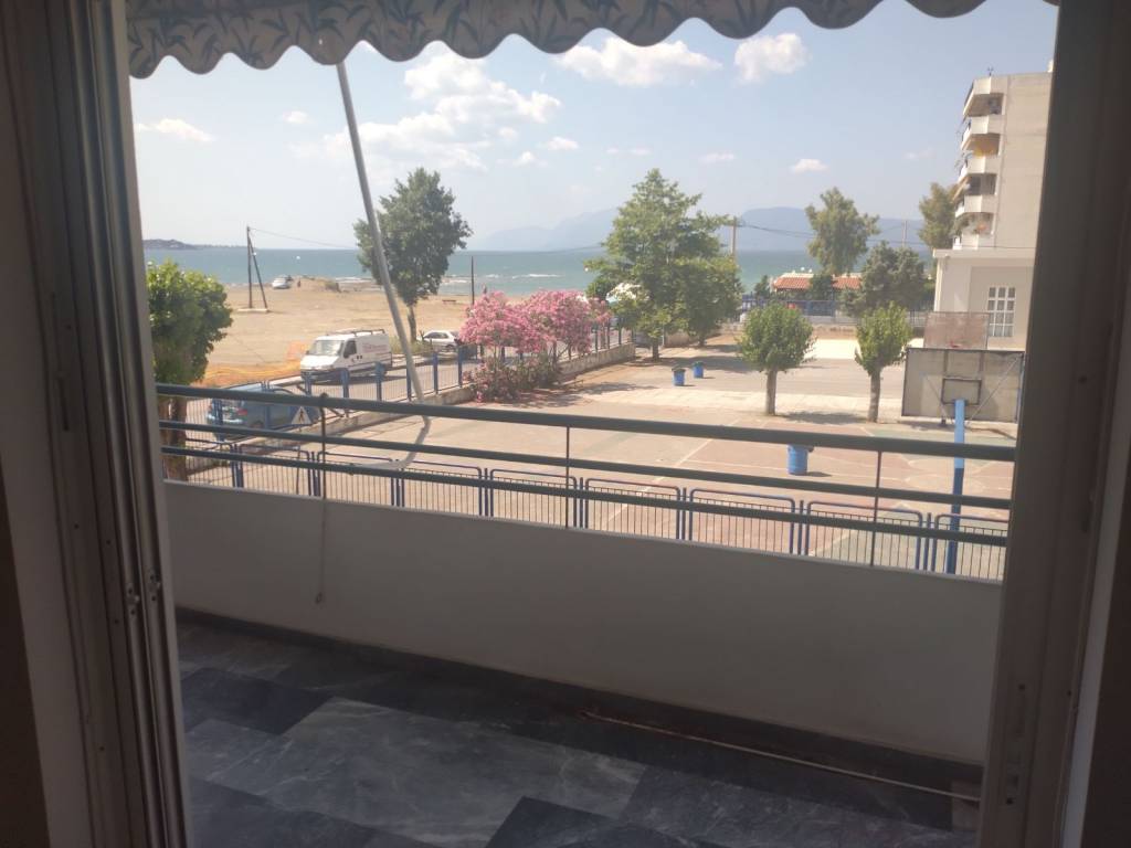 Διαμέρισμα πρώτου ορόφου με δύο υπνοδωμάτια , ένα κανονικό και ένα πιο μικρό χωρίς ντουλάπα. Με θέα στην θάλασσα, απέναντι από το δημοτικό σχολείο. Το διαμέρισμα διαθέτει και μεγάλη αποθήκη.
