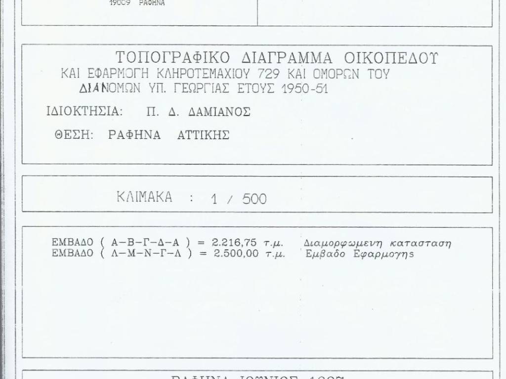 Γωνιακό υπερυψωμένο υδρευόμενο Αγροκτεμάχιο 2.321-2.500 τμ, το οποίο ευρίσκεται σε πολύ καλή θέση, αμέσως μετά την διασταύρωση της Ραφήνας, στην διασταύρωση των οδών Λεωφόρου Μαραθώνος (με 52 μ πρόσοψη) και Ροδοδάφνης (61 μ πρόσοψη) (500m μετά τα φανάρια της Ραφήνας), απέναντι από το σχολείο. Τα οχήματα της λεωφόρου Μαραθώνος βλέπουν κατευθείαν εμπρός τους το χτήμα λόγω της ελαφράς αριστερή στροφή της λεωφόρου. Είναι περιφραγμένο και περιλαμβάνει γεωργική αποθήκη 6,25 τ.μ. και περίπου 55 ελαιόδεντρα με αυτόματο ποτιζμό, μία πολύ καλή επένδυση 28 χλμ από την Αθήνα Ιδανικό για επιχειρήσεις εξωτερικού χώρου, αποθήκη, πάρκινγκ, μάντρα, κτλ αλλά και καλλιέργεια . Η Υδροδότηση γίνεται από τον Δήμο Ραφήνας. Οικονομική προσφορά για Αγορά ειναι ευπρόσδεκτη.