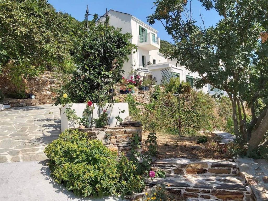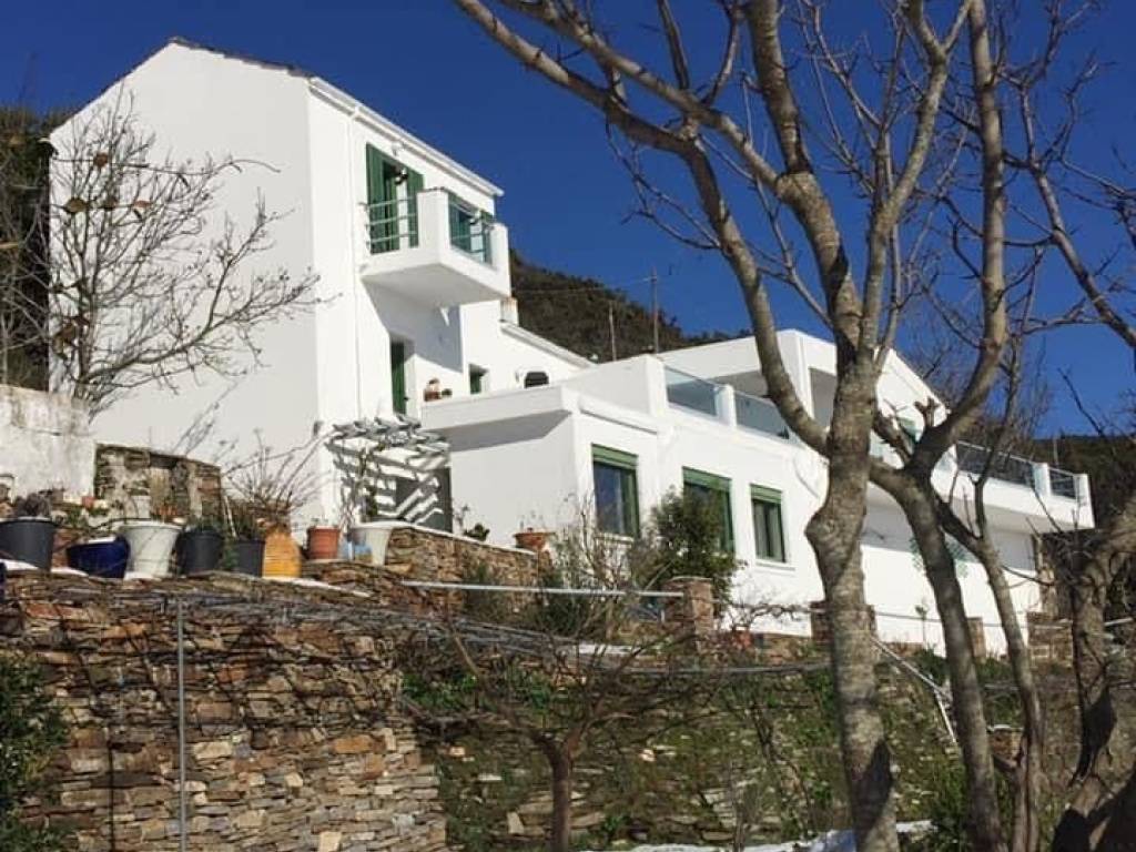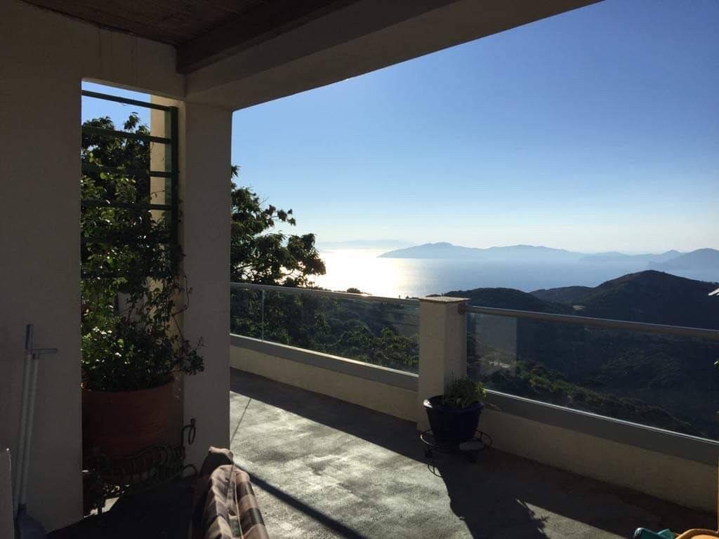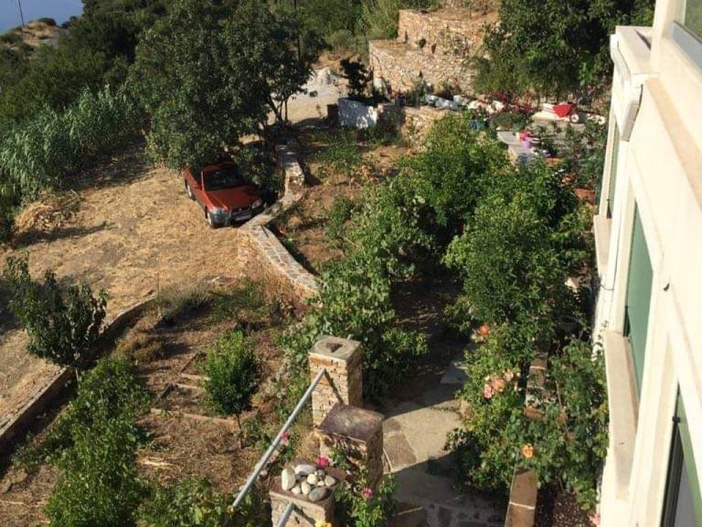 GREECE, Aegean Sea, Ikaria island, for sale traditional house of + \ - 213 sq.m. on a plot of +/- 4,7 acres. Located at 600m altitude, 15mn drive from the sea and the airport, with magnificent view of the Aegean Sea and the neighbouring islands! Beautiful garden with fruit trees and flowers on dry stone wall terraces . Living room with fireplace. Central heating. Solar heater for hot water. Three bedrooms, two bathrooms, one with Jacuzzi, large fully equipped kitchen, large veranda! Three large storerooms! Possibility to buy the furnitures. Price: 480.000 euro.