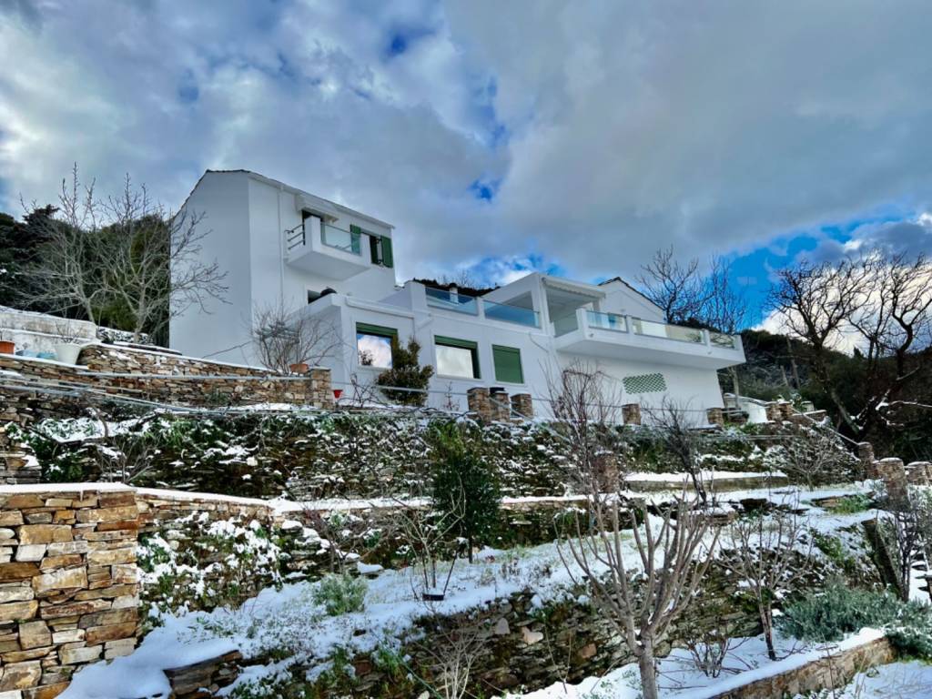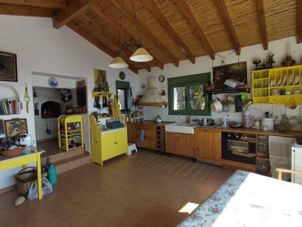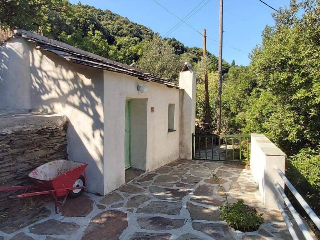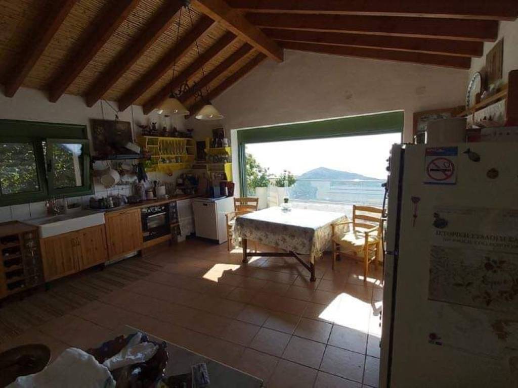 GREECE, Aegean Sea, Ikaria island, for sale traditional house of + \ - 213 sq.m. on a plot of +/- 4,7 acres. Located at 600m altitude, 15mn drive from the sea and the airport, with magnificent view of the Aegean Sea and the neighbouring islands! Beautiful garden with fruit trees and flowers on dry stone wall terraces . Living room with fireplace. Central heating. Solar heater for hot water. Three bedrooms, two bathrooms, one with Jacuzzi, large fully equipped kitchen, large veranda! Three large storerooms! Possibility to buy the furnitures. Price: 480.000 euro.