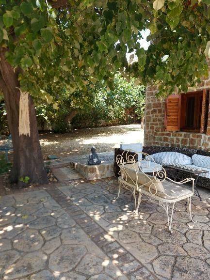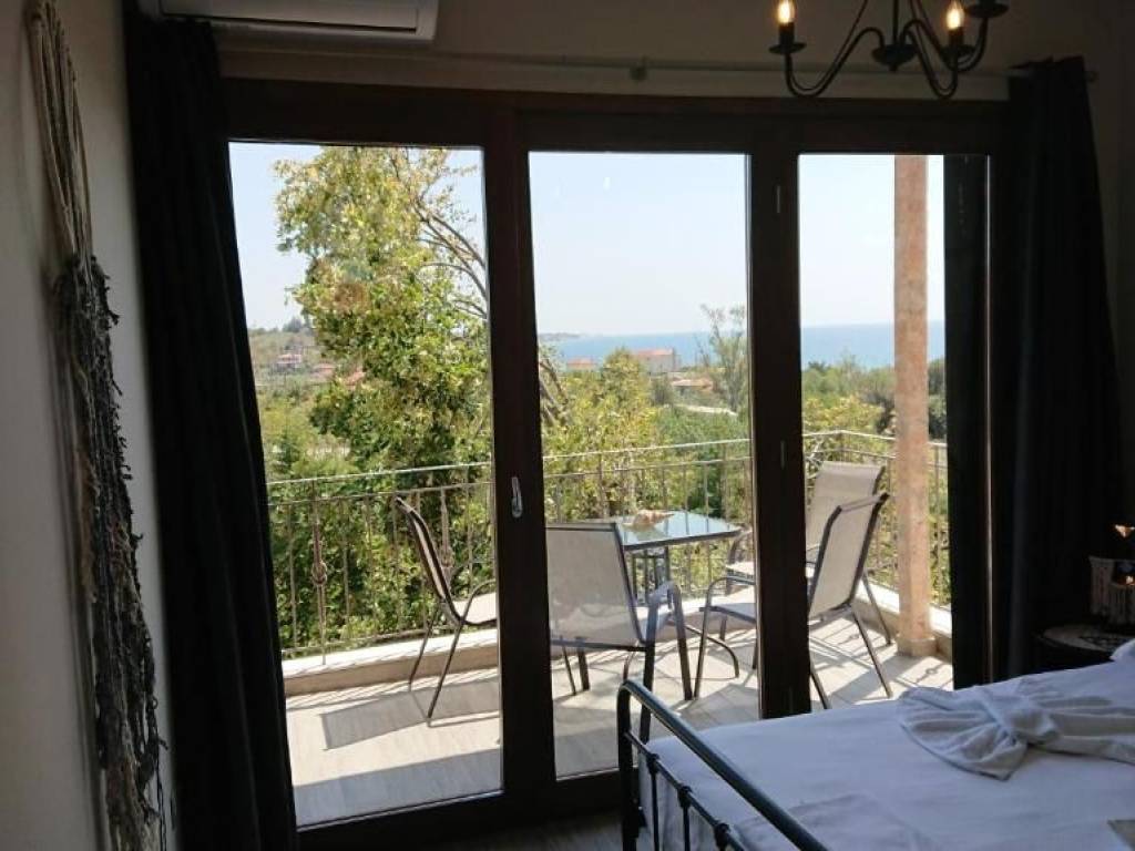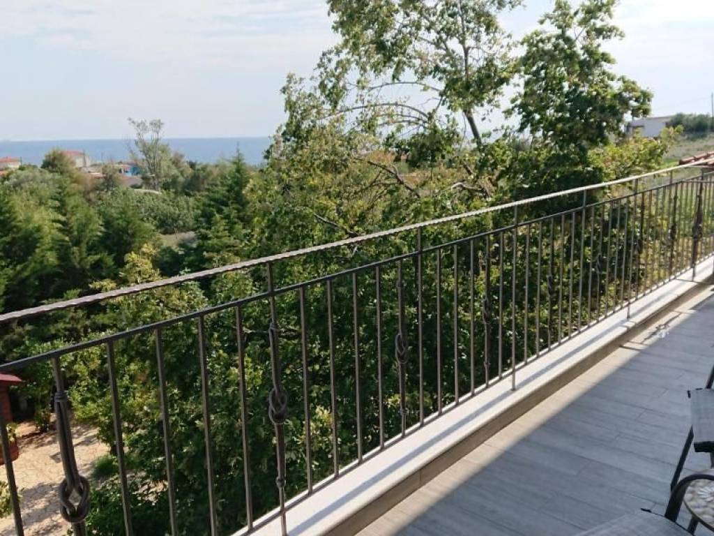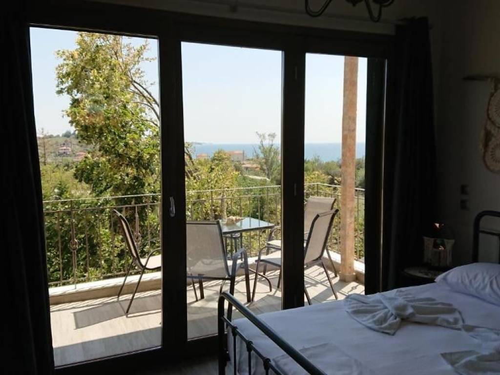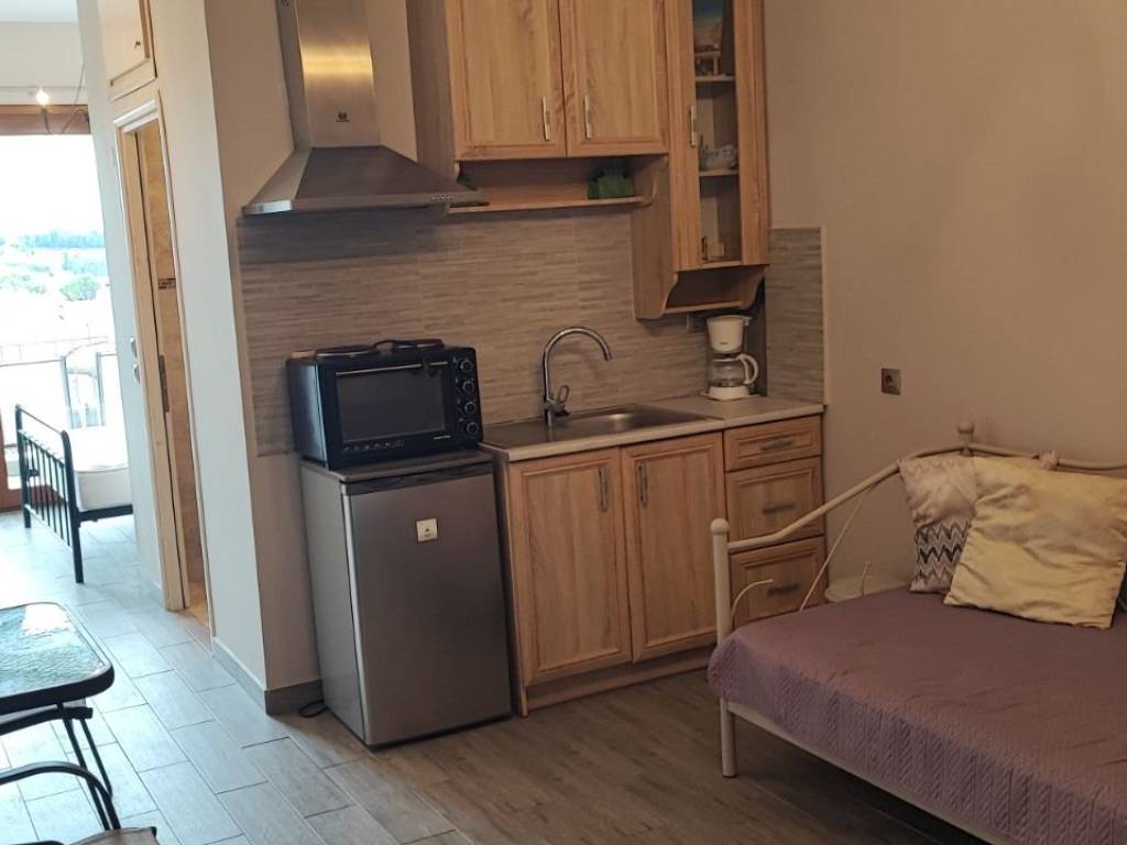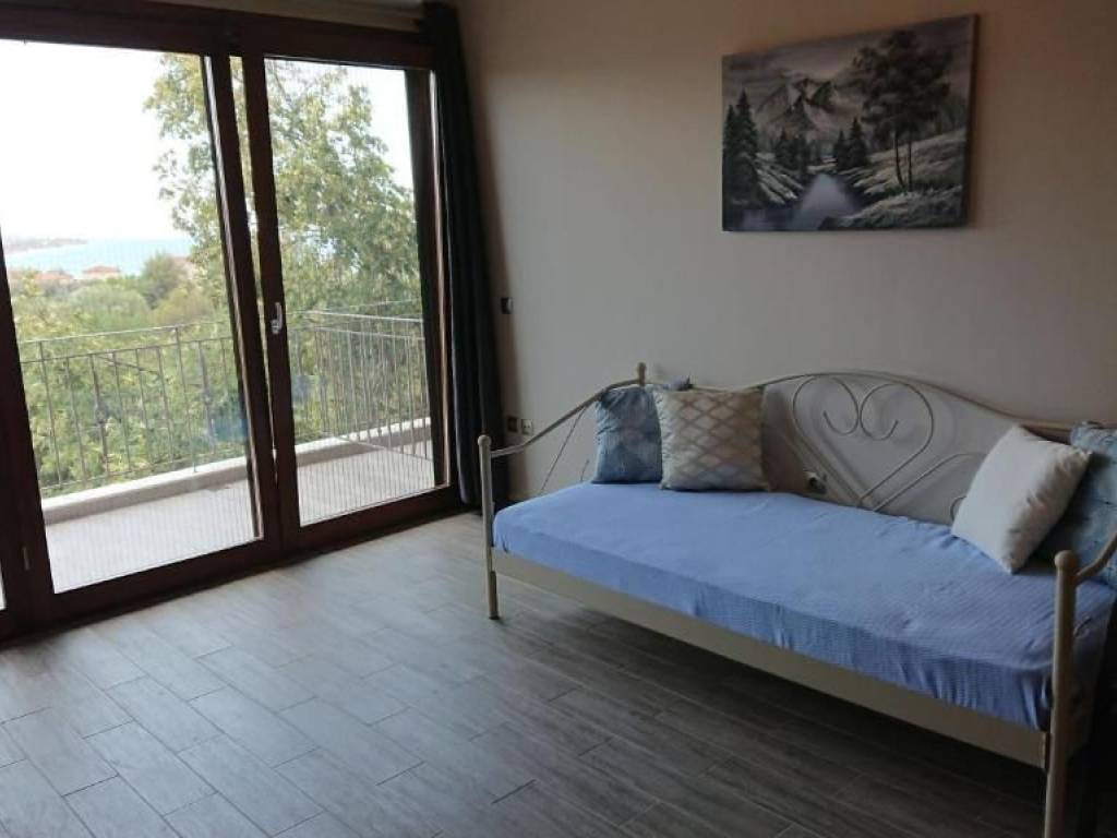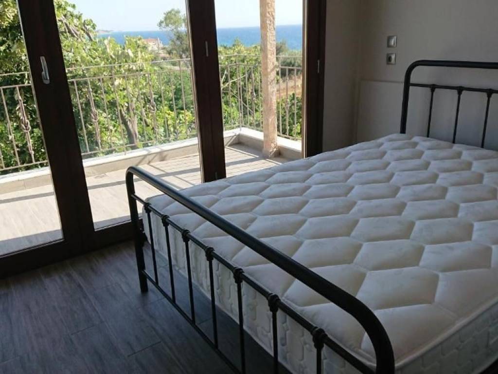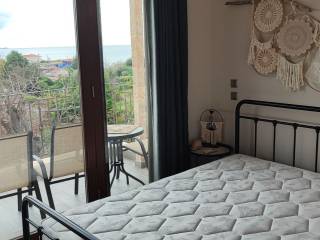 Studio-Apartment with perfect Sea View and overlooking nature and the village in a stone house of Macedonian style with nice lighting and large garden. 1 bedroom with 1 big double bed and 1 living room and kitchen with 2 big single beds, 1 sofa-bed, 1 spacious bathroom with walk in shower and washing nachine, terrace, balcony, fully furnished and well equipped, very good and economical electric heating, air conditioning, satellite TV, Internet, view of the lush garden, shade all day, spacious parking spaces, in Nea Potidea but very quiet area, very good for families with children, close to all the shops, close to wonderful beaches, close to doctors and pharmacy, big garden with furniture, all day shadow and fruits on the trees. Price for 12 months : 8.500 Euro Price for 2 years and longer 700 Euro/month Price for4-6 months (summer season) : 8.000 Euro Price for 2 months July and August 7.000 Euro Price for 3 months (summer) : 7.500 Euro Price for 9 months (September - May) : 6.000 Euro Price for 1 month : November - March 600 Euro per month / April 800 Euro / May 1.000 Euro / Juin 1.500 Euro / July 3.500 Euro / August 4.000 Euro / September 1.800 Euro / October 800 Euro