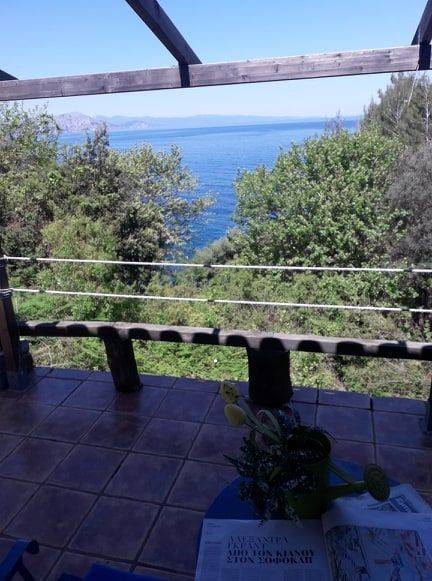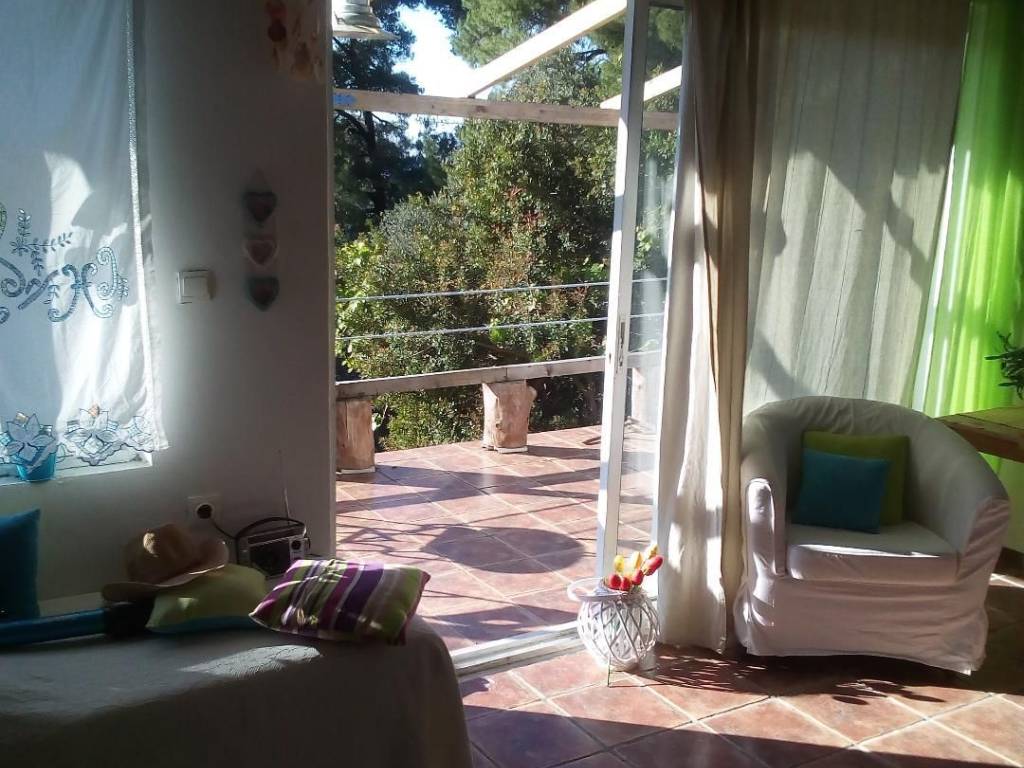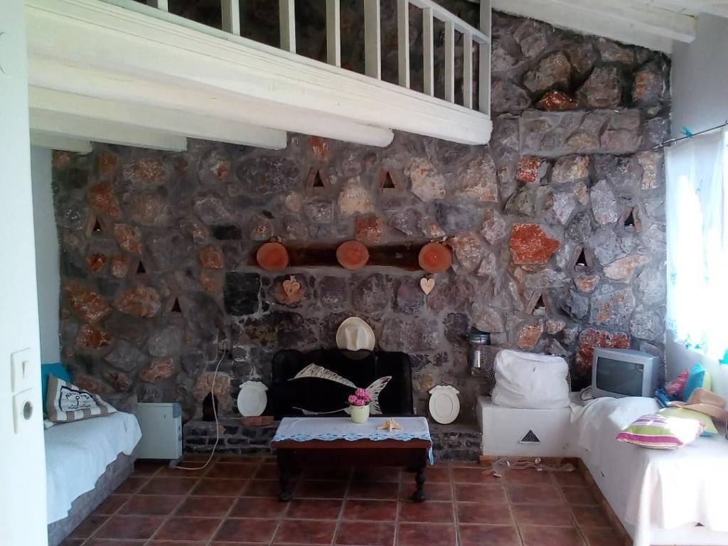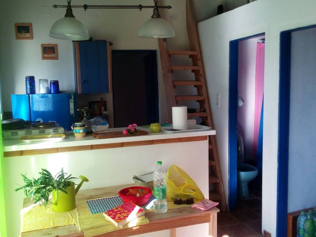 Holiday home in Sarakiniko, Evia with unlimited views of the Aegean Sea and the Sporades Islands. Approximately 2 hours from Athens and half an hour from Mantoudi. Stunning nature with plane trees, walnut trees, pine trees and fir trees that offers peace and tranquility. The house is located on a sloping plot of 500 sq.m. in front of the sea. A private path in 1 minute leads to a unique and inaccessible beach. The house consists of a single kitchen-living room with stone fireplace, a bedroom, wc, storage room and also a comfortable loft with bed and internal wooden staircase. Large veranda with pergola, and amazing view of the Aegean Sea.