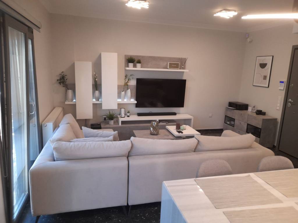 The apartment is located in a very central spot, 1 minute from the main square of Chalandri. It is being renovated with energy-efficient frames and triple glazing for heat and sound insulation. Alarm system, solar water heater. Fully furnished with branded electronics except TV. No elevator, no utilities.