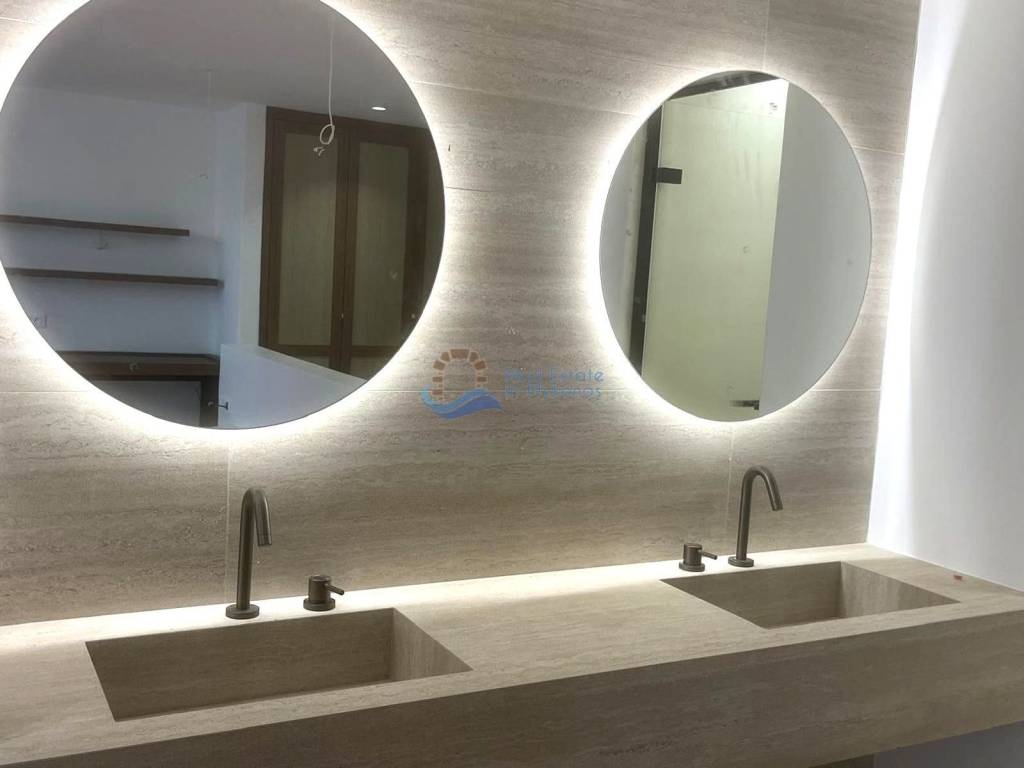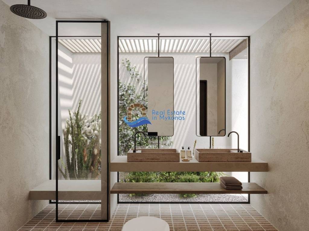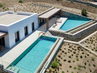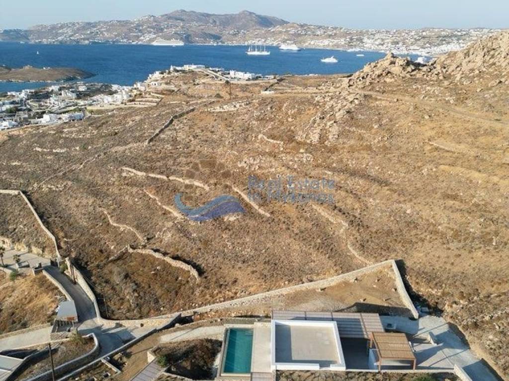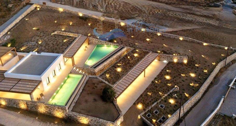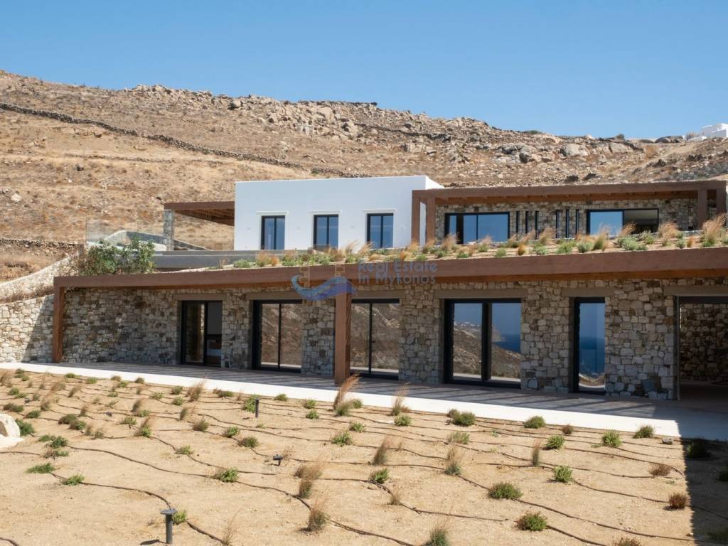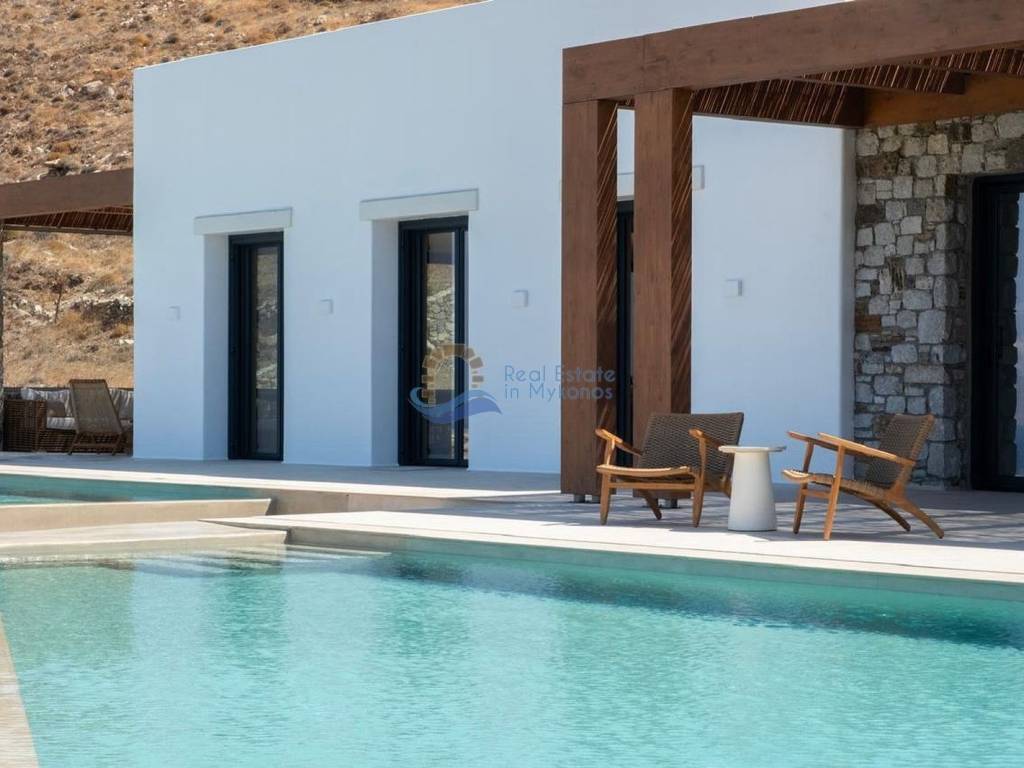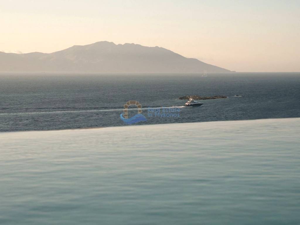 Mykonos, Diakoftis, Pouli. Newly built, souper luxurious villa of 704 sq.m., with unlimited views of the sea, Delos, the sunset and the surrounding islands. On a land of 4.041 sq.m., built on 2 levels, with a total of 2 swimming pools, 8 bedrooms, 8 bathrooms, 2 WC, and many auxiliary spaces. On the main (upper) level, there is a large open space lounge- dining-kitchen, a WC, 2 bedrooms each with bathroom en suite, storage room, large terraces with pergolas, BBQ, a big swimming pool infront of the living room and another pool infront of the bedrooms. On the lower level there are 4 bedrooms each with en suite bathroom and large veranda, gym, laundry, storage, a housekeeper’s room. Contemporary construction of high standards with expensive materials and equipment. With "smart home" technology, air conditioning in all areas and a ventilation system, wooden windows and doors with double glazing. With a very large water tank and biological sewage treatment. In the surrounding area there is a garden and many parking spaces. www.realestateinmykonos.gr, info@realestateinmykonos.gr, +302289027317.