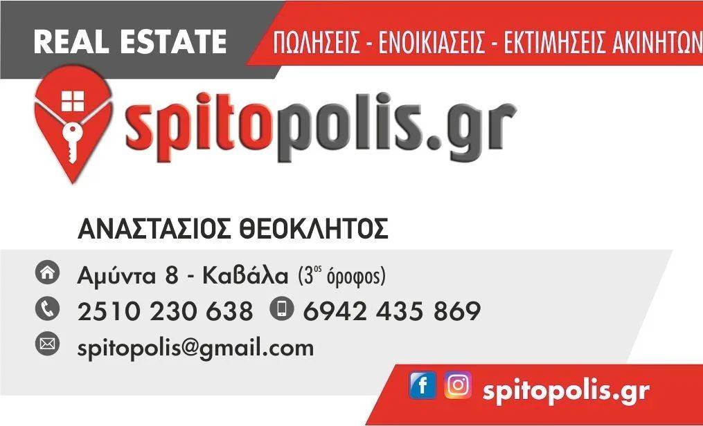 Πωλείται διαμέρισμα 94 τ.μ. στην περιοχή Πεντακοσίων, Καβάλα Περιγραφή Ακινήτου: • Εμβαδόν: 94 τ.μ. • ️ 2 υπνοδωμάτια • ️ Σαλόνι • ️ Κουζίνα • Μπάνιο • Μπαλκόνι με θέα • Θέρμανση με αυτόνομο καλοριφέρ πετρελαίου • Επιπλέον: Τζάκι • Αποθήκη 94 τ.μ • Ημιόροφος Τιμή πώλησης: 75.000€ Μεσιτικό γραφείο: spitopolis.gr Έδρα: Αμύντα 8, Καβάλα (3ος όροφος) Με εμπειρία και συνέπεια στον χώρο της μεσιτείας ακινήτων Για την υπόδειξη του ακινήτου απαιτείται η προσκόμιση αστυνομικής ταυτότητας και ΑΦΜ. Τηλέφωνα επικοινωνίας: • +30 2510 230638 • +30 6942 435869 (διαθέσιμο και σε Viber & WhatsApp) Δείτε περισσότερα ακίνητα στο site: www.spitopolis.gr