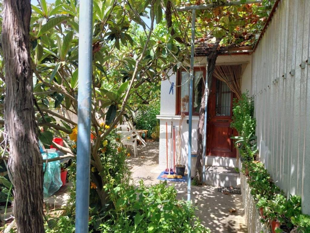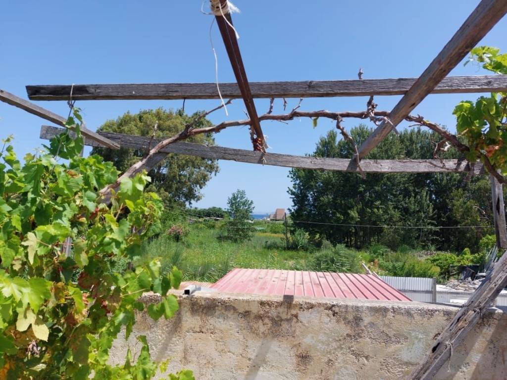 Sitia, East Crete: Town house with large garden and walking distance to the sea. It is located just 275meters from the sea. The house is located on a plot of 588m2. The house is 75m2 and consists of a kitchen, a living area, two bedrooms, two bathrooms-shower and a corridor. There is a big large storage room of 86m2 which can easily be turned into a house. Outdoors from the garden area there is a metal staircase which leads to the roof terrace. The roof terrace enjoys views to the mountains and a little to the sea. There is a fantastic garden area with fruit trees and flowers. The house has good access and all services are connected. Lastly, there is a mountain view from the mountain and a little sea view from the sea.