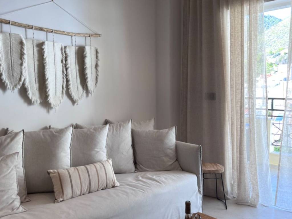 The apartment was completely renovated in 2023 with a selection of modern materials. It is located in a very quiet area and has an unlimited view of the Gerania Mountains and the sea. On the terrace the visitor can enjoy a magical sunset. It is a penthouse, it is 500 meters from the beach with restaurants and 800 meters from the thermal baths . Rental period from November to May 2024.