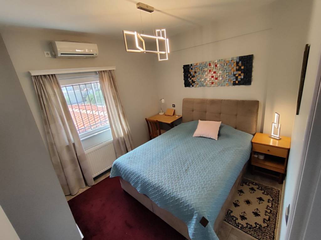 A modern, 2-storey house in good repair with PVC windows, a spacious terrace and a large balcony around the perimeter of the second floor. Also on the territory of the house there is a covered garage and a basement (15 sq/m). On the ground floor there is a spacious entrance hall, kitchen-living room with fireplace, bathroom, 1 bedroom. Second floor with separate entrance. On which there are: kitchen-living room, combined bathroom, 3 bedrooms, 2 of them have access to the balcony. The area around the house is landscaped and fenced with a fence trimmed with decorative stone. The house is equipped with: Alarm (with the ability to install a mobile application), video surveillance around the entire perimeter of the site (also with the ability to install a mobile application), landline telephone, high-speed Internet, autonomous heating, solar panels for heating water, air conditioning in all rooms and living rooms. The house is fully furnished and equipped with modern appliances (dishwasher, 2 washing machines, 2 refrigerators, hobs and oven) 5 minutes walk to the sea.