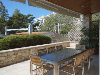 Detailed Layout: 1. Basement: o Garage: Accommodates 2 spacious parking spaces o Service Suite: Includes a bedroom with a bathroom and its own independent entrance/exit o Technical Rooms: Boiler room, a large storage area, and a smaller storage room o Additional Spaces: A fitness room equipped with 3 bathrooms/showers and a versatile large room suitable as an exhibition area or playroom 2. Ground Floor: o Main Entrance: Accessed from the street (Astypalaia) o Living Areas: Includes an entrance hall, a mini bar, and an office library o Social Spaces: 2 living rooms and a dining area o Kitchen Area: Fully equipped kitchen with a TV area, complemented by a laundry room o Storage: Additional storerooms including one dedicated food storage area with refrigerators o Outdoor Features: Verandas facing south and west with views towards Laimós and Kavouri, plus a swimming pool that comes with its own small house featuring a kitchen and bathroom, all surrounded by a landscaped garden 3. First Floor: o Bedrooms: 3 en-suite bedrooms, each with its own veranda, offering expansive views of Voula and Vouliagmeni 4. Second Floor: o Apartment: A spacious apartment with its own bathroom, living room, a small kitchen, and an office space, all with an uninterrupted panoramic view