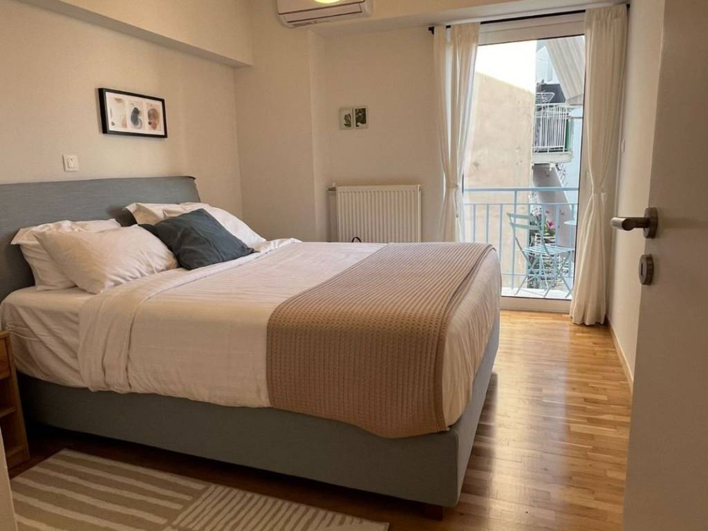 53 sqm Apartment in Kypseli, Athens 53 sqm apartment, 1st floor, only 3 blocks away from Kypselis Square, very bright, fully renovated and fully furnished and fully equiped. Property details: 53 sqm, double frontage with two small balconies in the front and back side of the building. The apartment was fully renovated during the summer of 2024. It has new electrical and plumbing network, independent low consumption gas heater. Aluminum frames, window nets, security door. Each room/space can be separated by its own door. The apartment is fully equipped with electrical appliances (refrigerator and freezer, oven, stoves, washing machine, dish washer, 2 air conditioners A+++, independent gas heater, lighting outfits). A double king size bed and a couch bed (opening to two single beds) are included. Not for realters. Montly rent 800 Euros + bills. Contact mobile: +**/******