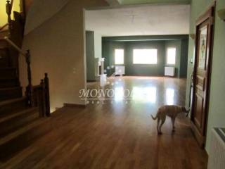 Elliniko - Kato, close to beach, in the best spot, almost inside the new mega project of Lamda Development, is a 3 story detached house of 375sqm., constructed in 2005, in excellent condition. It consists of a raised ground floor with a very large living room with wooden floors, a fireplace and windows with view of the front garden. At the back there is a large separate kitchen, with a bench, a sitting area with a fireplace, windows and a wide veranda overlooking the back garden. Between the living room and the kitchen is the magnificent entrance with high ceilings, 1 WC, the staircase and the 4-person elevator. On the 1st floor there are 4 bedrooms and 2 bathrooms. Two of them face the front and the other two face the back. All have wooden floors, many wardrobes, balcony doors, and are of a large size, especially one of them, which is even larger (master type). There are verandas at the front and back with access from all bedrooms. On the lower level there is a large playroom, 1 bedroom, 1 bathroom, a laundry room, a storage room, and a separate entrance from the garden. The playroom is now divided into an office space with tiled floors, and a multi-purpose room for relaxation and play, with a fireplace, wooden floors, and windows overlooking the garden. It has autonomous heating on each level, aluminum frames, A/C, boiler, security system, double glazed windows, inner elevator, big storage room, and 2 parking places. On the perimeter is a beautiful garden with grass and trees. It is located in a quiet area, one of the best and most expensive of Athens Riviera, inside a future paradise. It is rented for a short period, and it will be renewed for a short term again. *The location of the property on the map may be relevant and not accurate. *The appointment for the suggestion of the property requires the presentation and suggestion of your police ID and VAT ID, and any people who accompany you.