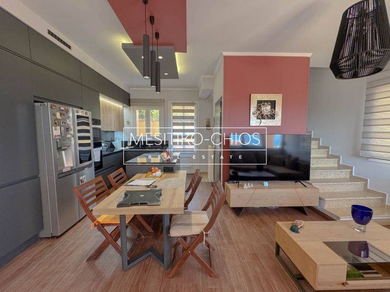 Η δεύτερη μεζονέτα ανακαινίστηκε πλήρως το 2020 με υλικά άριστης ποιότητας και μοντέρνα αισθητική. Έχει την ίδια λειτουργική διαρρύθμιση και διαθέτει πλήρη επίπλωση και εξοπλισμό. Η προσοχή στη λεπτομέρεια είναι εμφανής: νησίδα με επαγωγική εστία, ενσωματωμένο απορροφητήρα, διακόπτες αφής, περσίδες εξαερισμού ψυγείου, ηλεκτρική τέντα με φωτισμό LED, αυτόνομη θέρμανση πετρελαίου, κλιματισμό, ηλιακό θερμοσίφωνα και συναγερμό. Η θέα από τα μπαλκόνια της είναι απρόσκοπτη, προσφέροντας στιγμές χαλάρωσης και ηρεμίας.