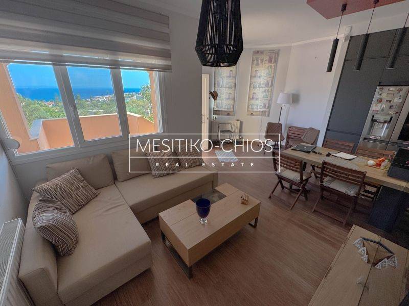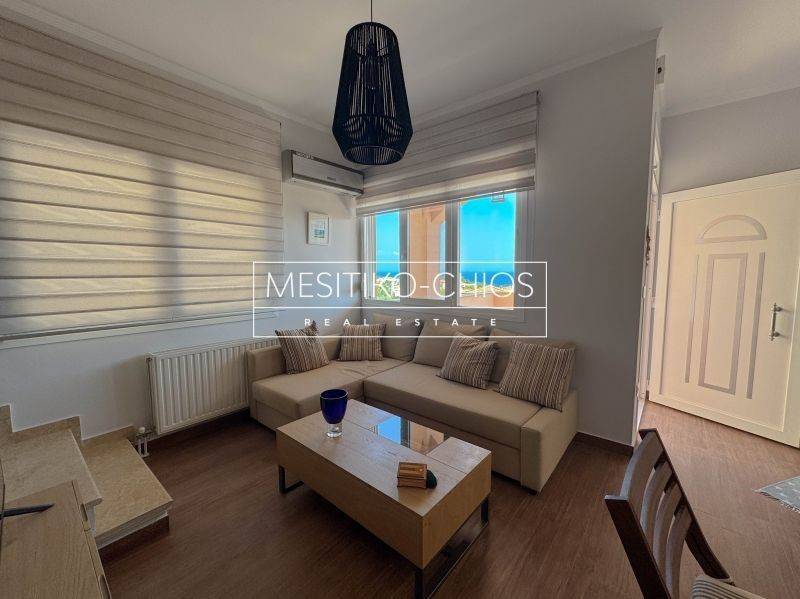 Η πρώτη μεζονέτα, κατασκευασμένη το 2004, διαθέτει έναν άνετο ενιαίο χώρο με κουζίνα, καθιστικό και τραπεζαρία, ένα WC επισκεπτών, δύο υπνοδωμάτια και ένα κυρίως μπάνιο. Είναι πλήρως επιπλωμένη και εξοπλισμένη, διαθέτει αυτόνομη θέρμανση πετρελαίου, κλιματισμό και μπαλκόνια με απεριόριστη θέα. Προσφέρει ήδη εγγυημένο μηνιαίο εισόδημα 600€, καθώς είναι μισθωμένη.