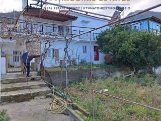 Vendesi: casa indipendente su due piani con vista panoramica, due garage sulla strada principale, ripostiglio in pietra, tre camere da letto, cucina, camino e spazio edificabile rimanente su un terreno di 1500 mq. Contattare il numero 6947442014 o 16.