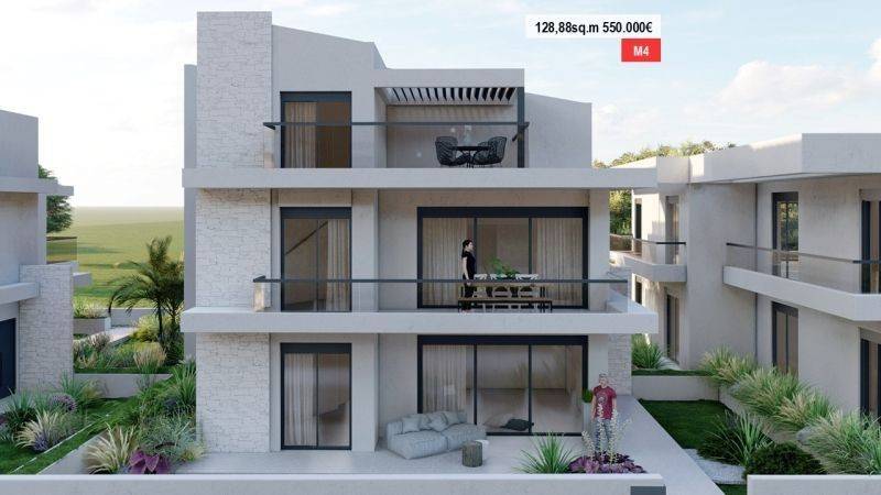 • 6 Τριώροφες Κατοικίες με σοφίτα 128,88τ.μ, που αποτελούνται από σαλοκουζίνα, 3 υπνοδωμάτια, 1 Master υπνοδωμάτιο και 4 μπάνια.